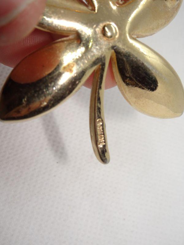 Crown Trifari Gold Tone Star Pattern Flower Brooch, Signed Trifari