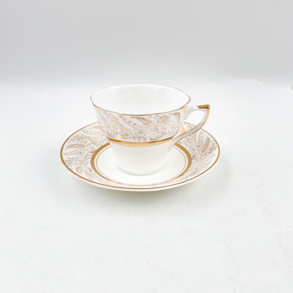 CROWNFORD CHINA WHITE & GOLD TEACUP & SAUCER