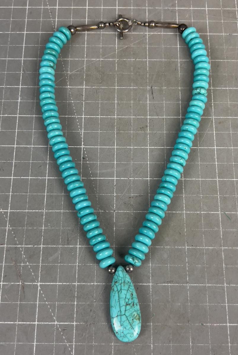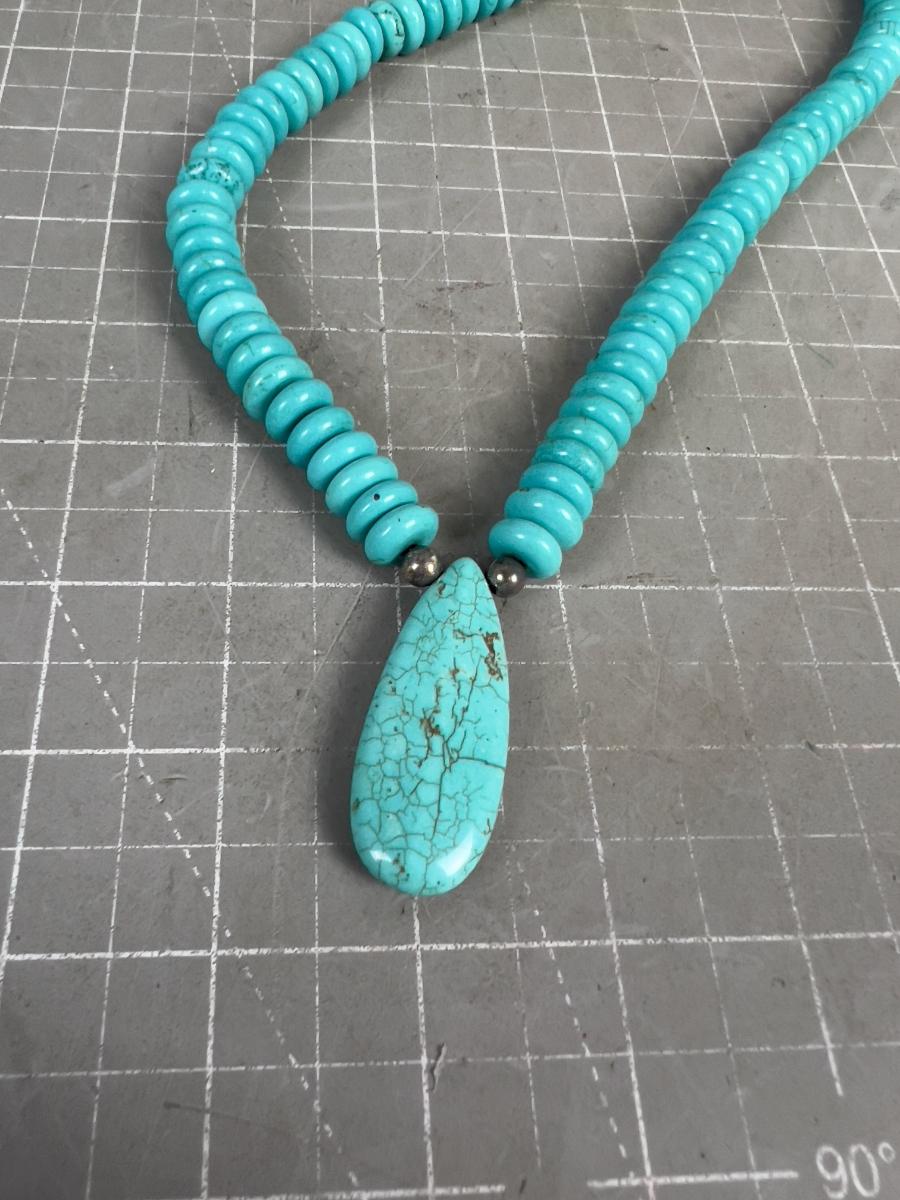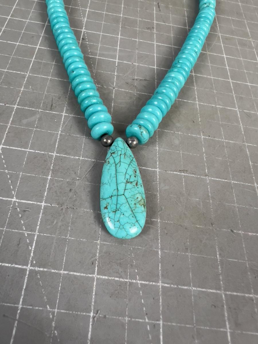 Crushed Stone Manufactured PENDANT but the Beads are Authentic. 19" Necklace.