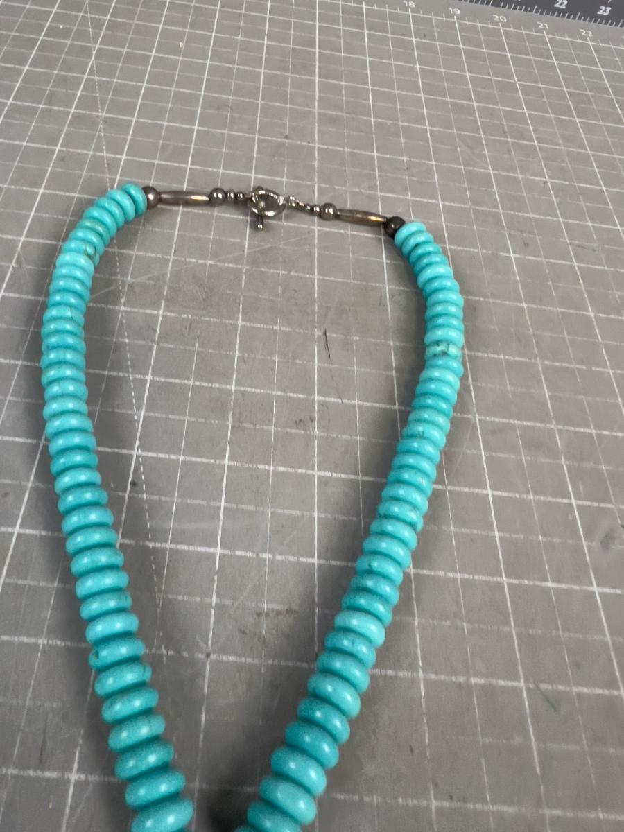 19" Long with Silver Clasp. Real Stone Beads. NICE!!!! Also a statement piece.