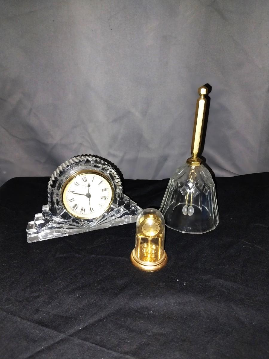 CRYSTAL CLOCK-BELL AND MINITURE SHADOW BOX CLOCK