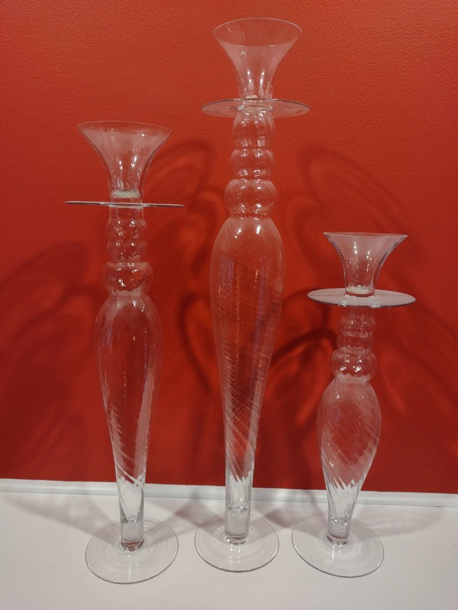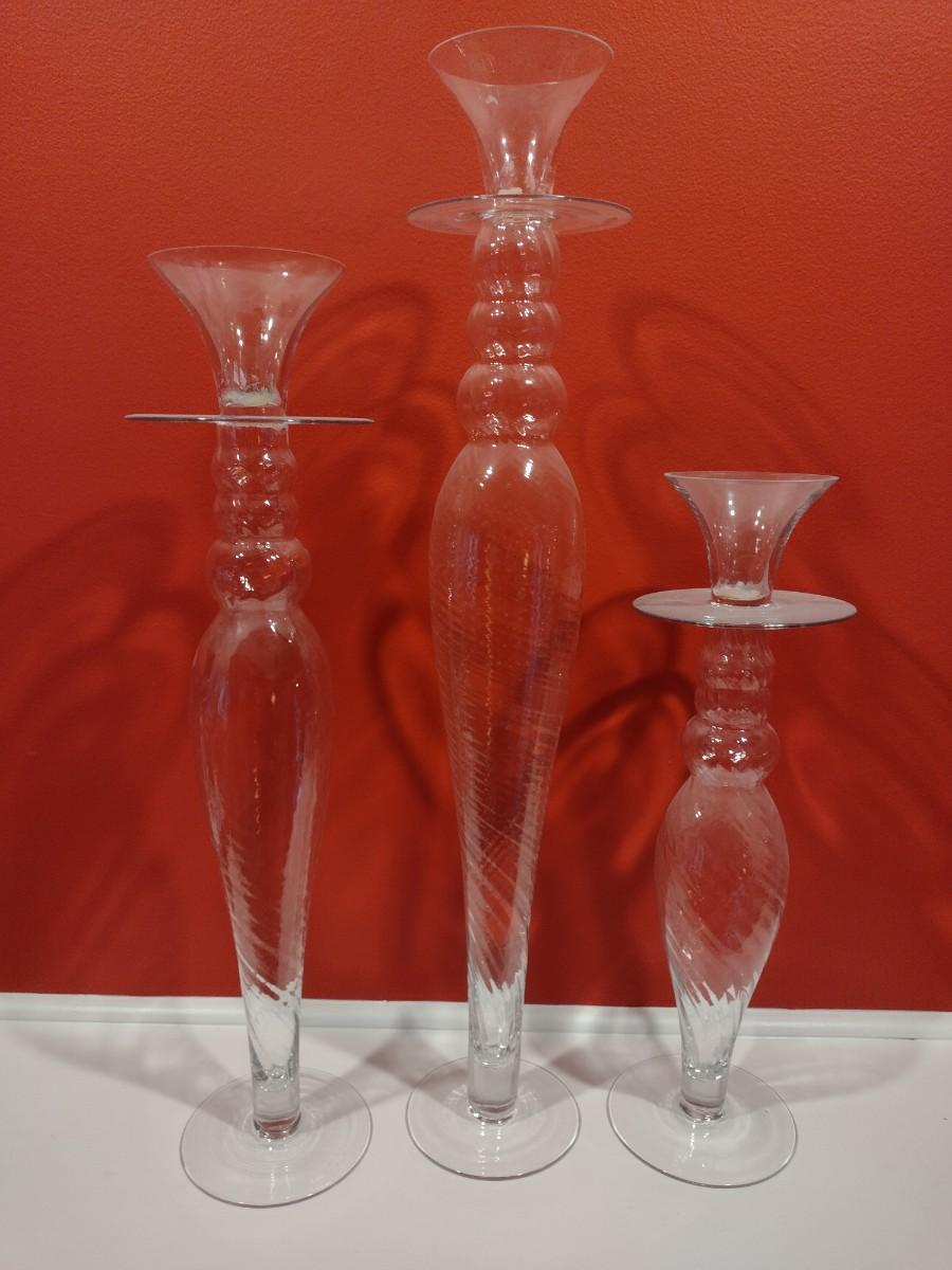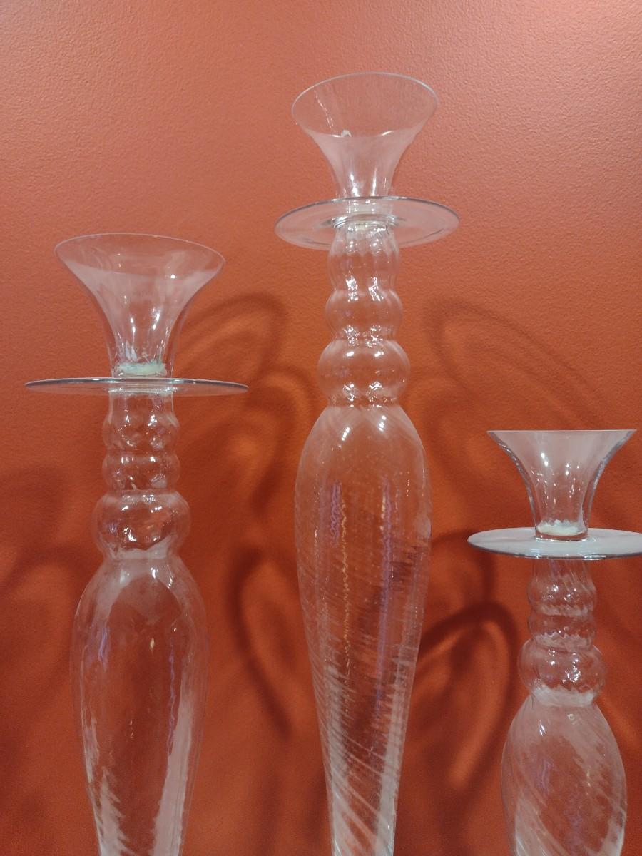Set of Three Crystal Candle Holders Swirl Design with Wax Dish