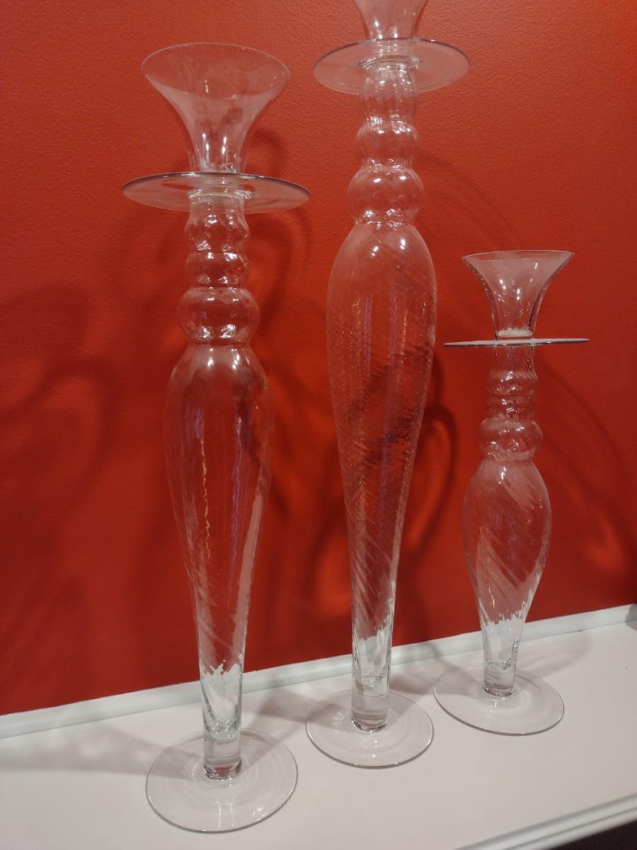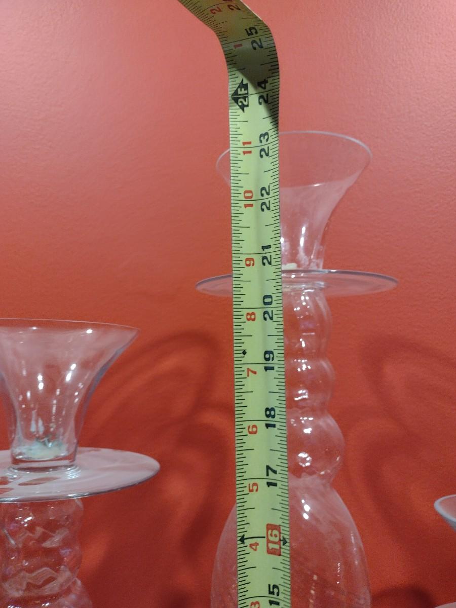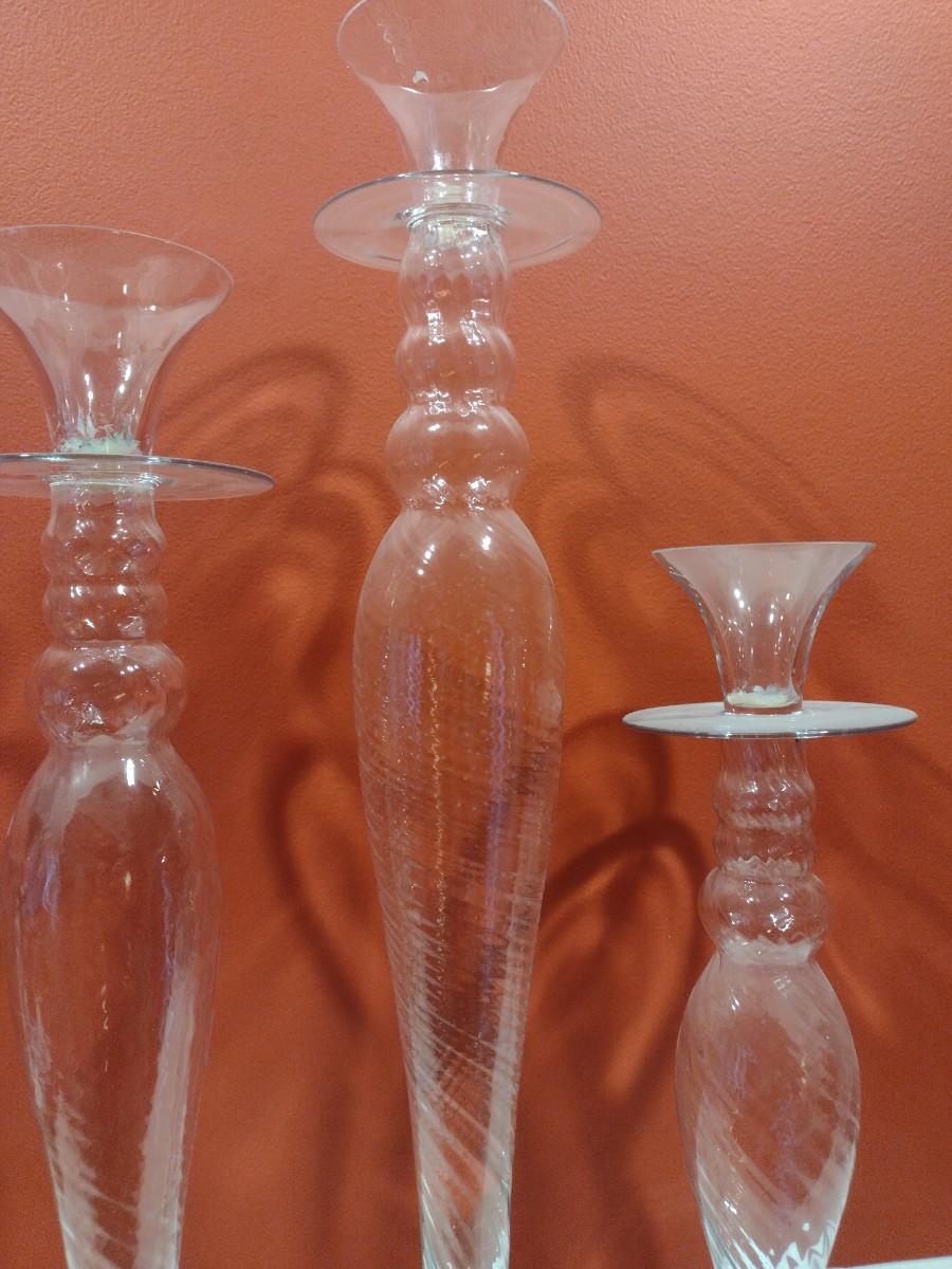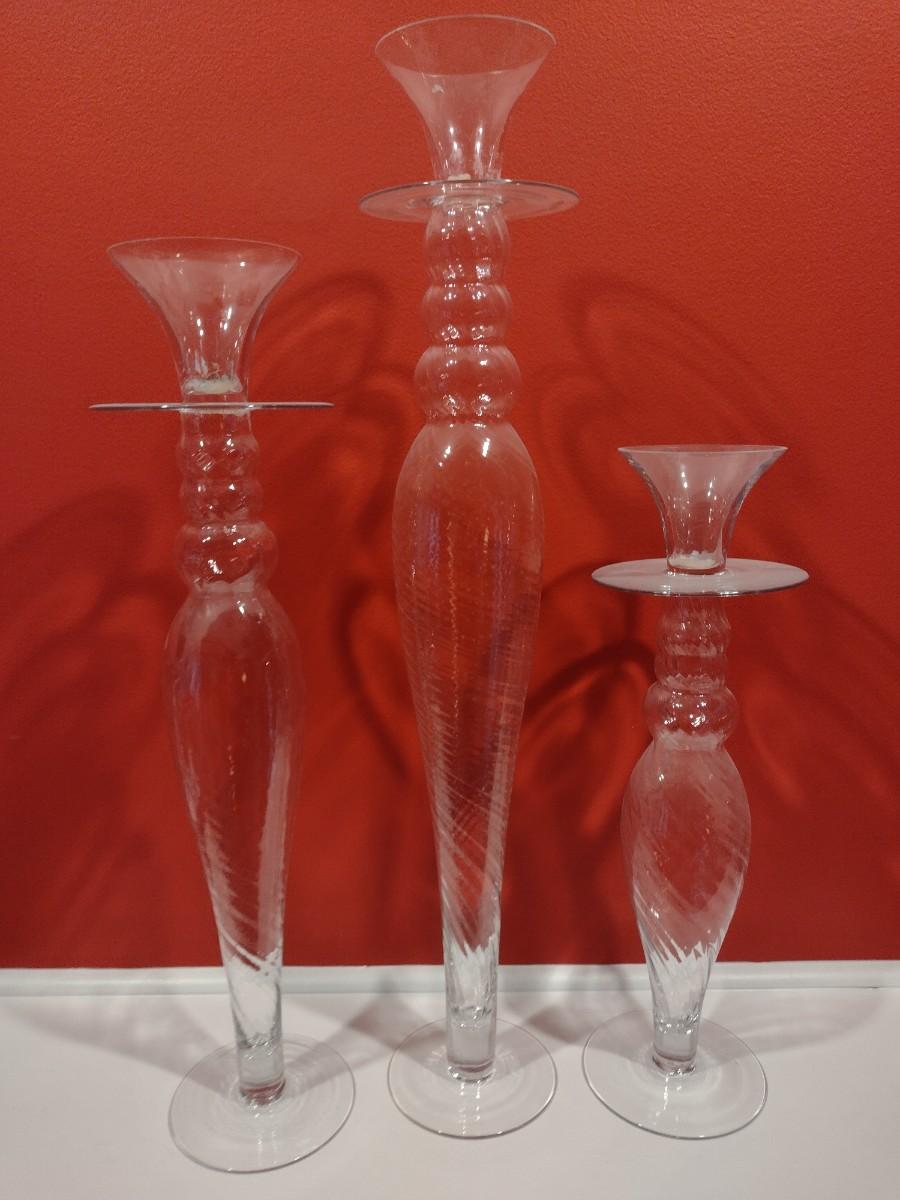 Set of Three Crystal Candle Holders Swirl Design with Wax Dish
