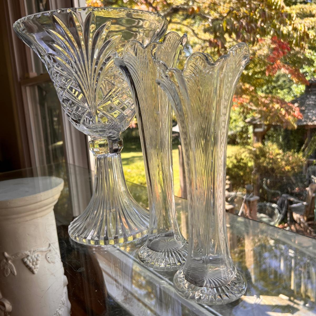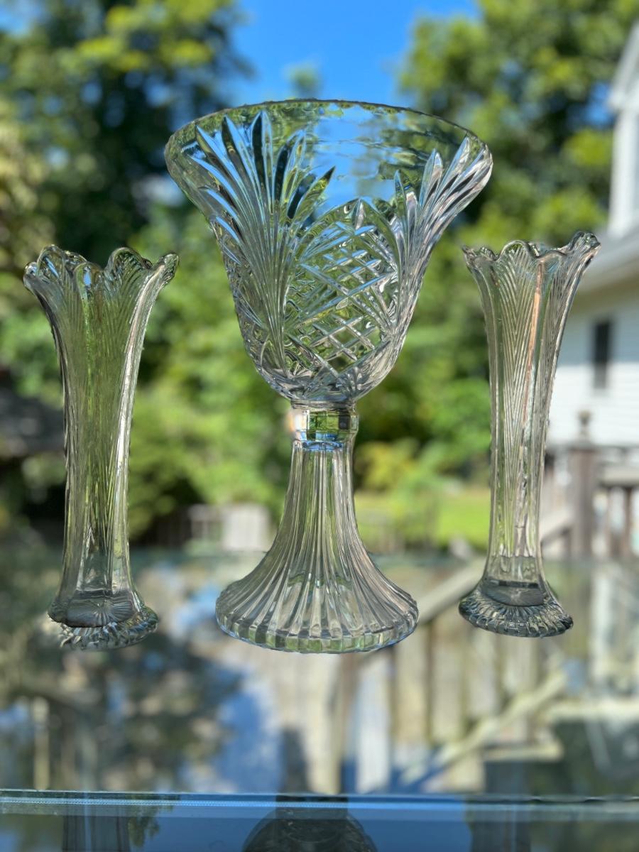 3 Vintage Vases - 14.5” Imperial Crystal, 2 Swing Vases