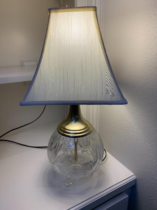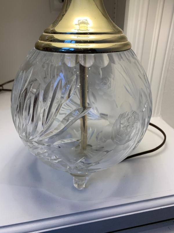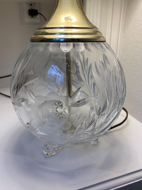 3 crystal legs as noted in photo, Crystal in Excellent Condition. Very pretty in person when turned on.......