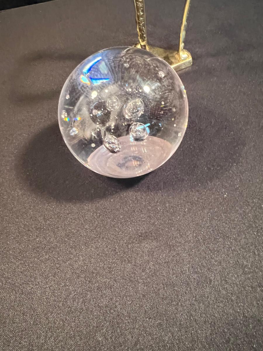 Ball is 4-1/2" Diameter together 10" Tall with stand