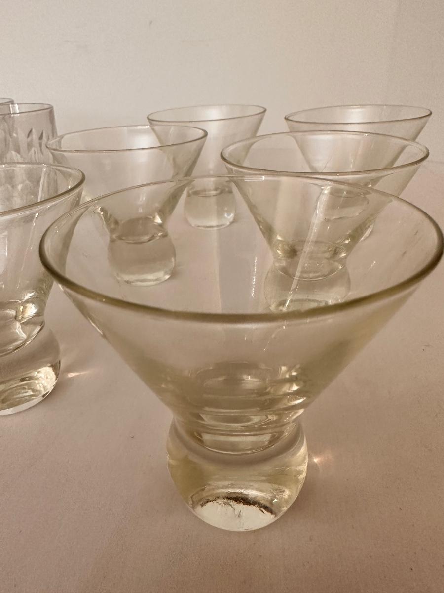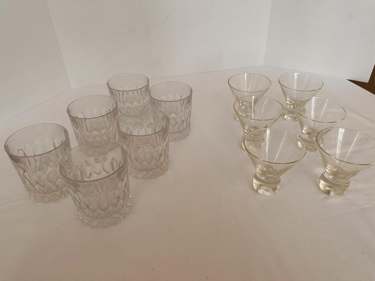 CRYSTAL BARWARE LOT, STEMLESS MARTINI(6), ROCKS GLASS(6) AS PICTURED
