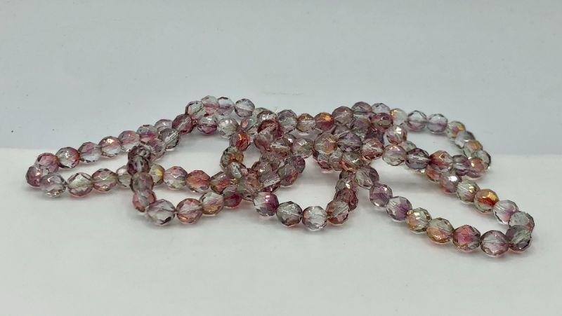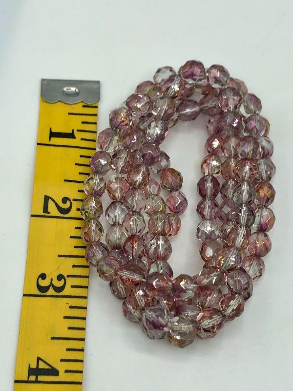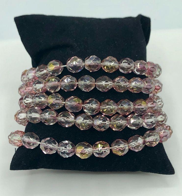 5 pale watermelon AB pink crystal glass bead bracelets. They do not stretch. About 4" across.