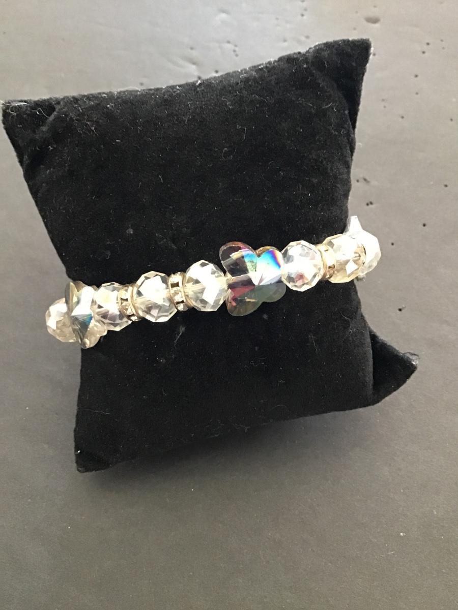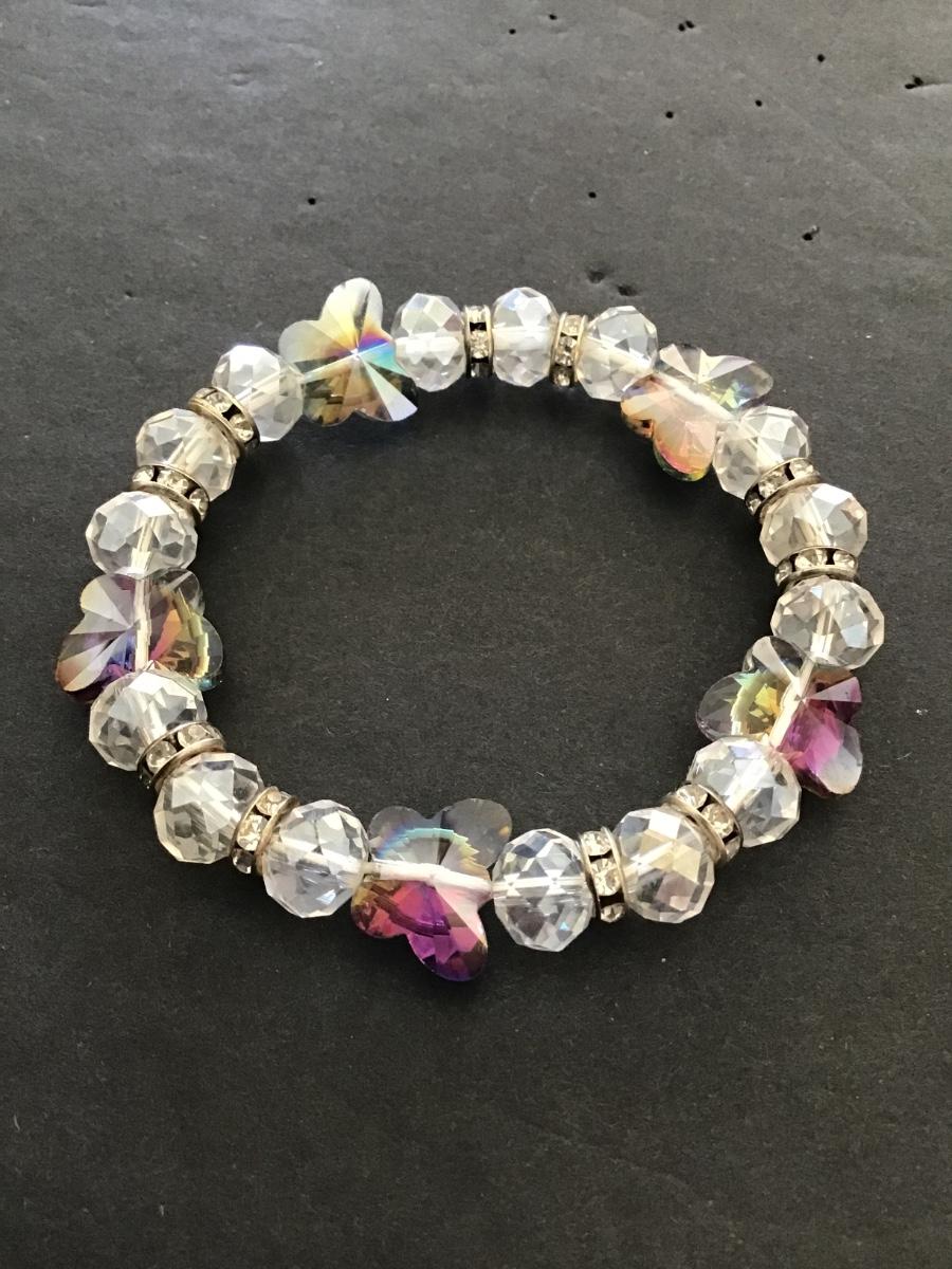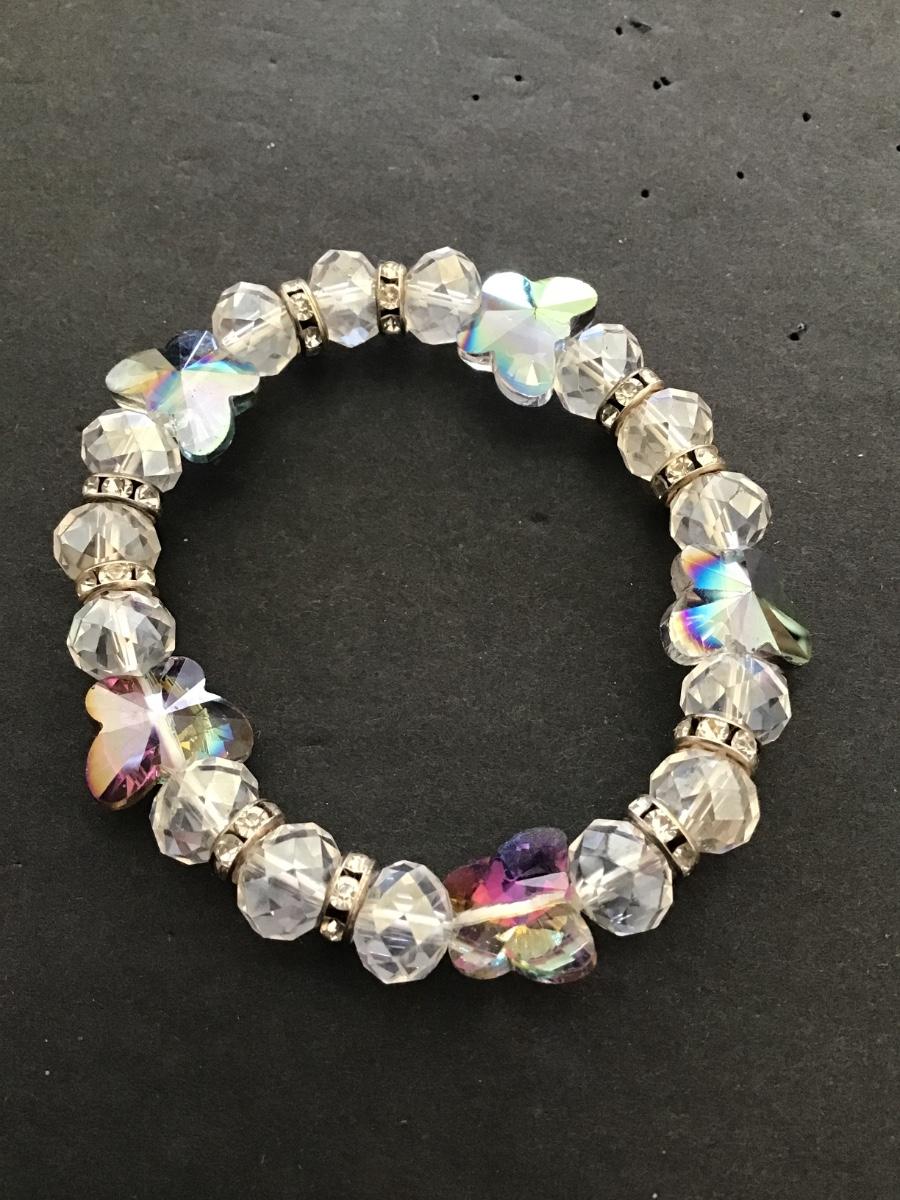 Crystal beads with AB butterflies stretchy bracelet. Please see attached photos.