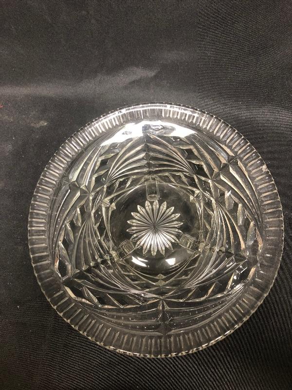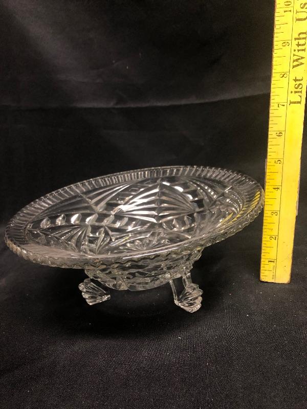 Footed crystal fruit bowl. Beautiful cut pattern.. 10” across and 4" tall. Tri footed. No defects..