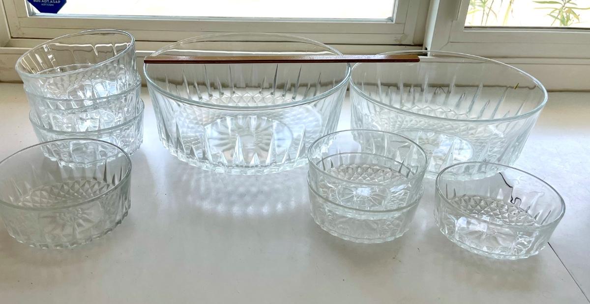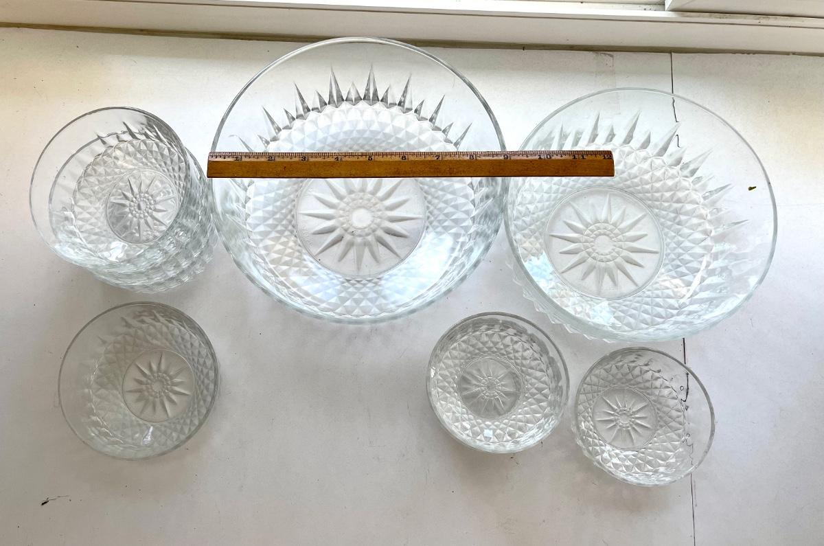 In good condition except for one of the small bowls has a chip on edge. See photos.