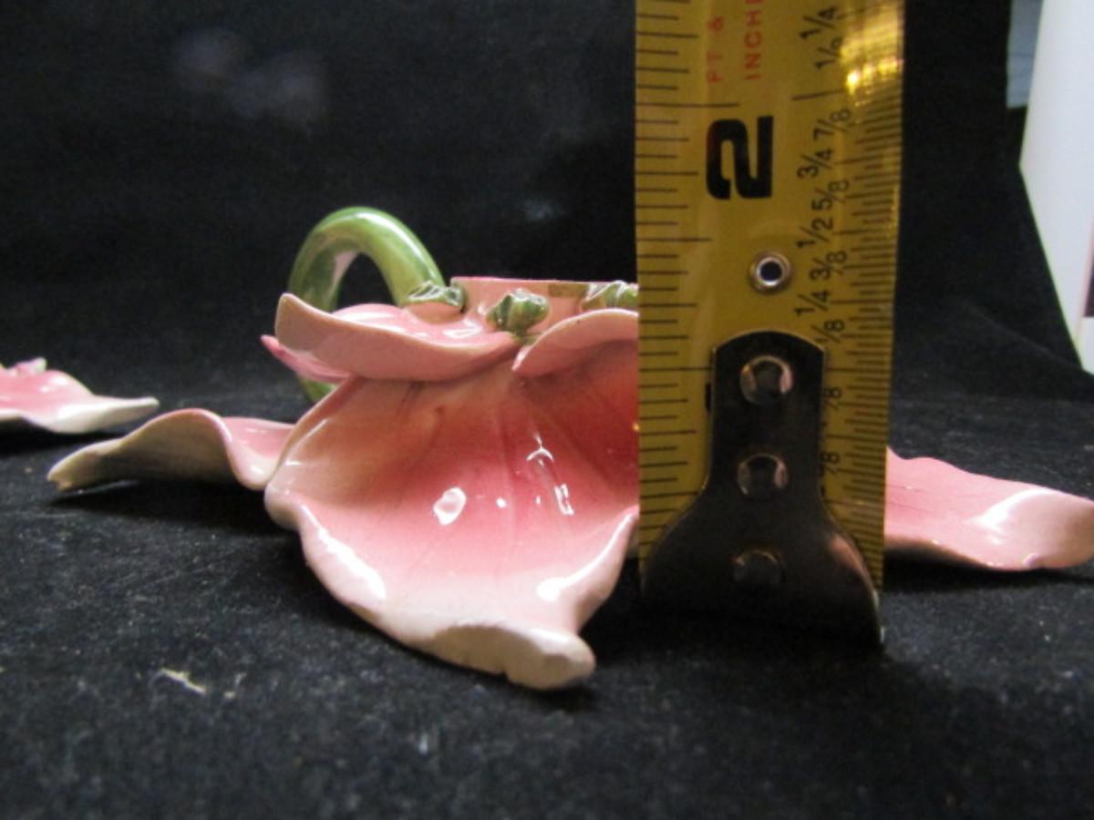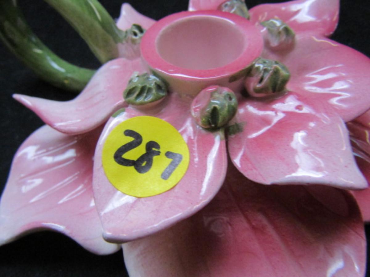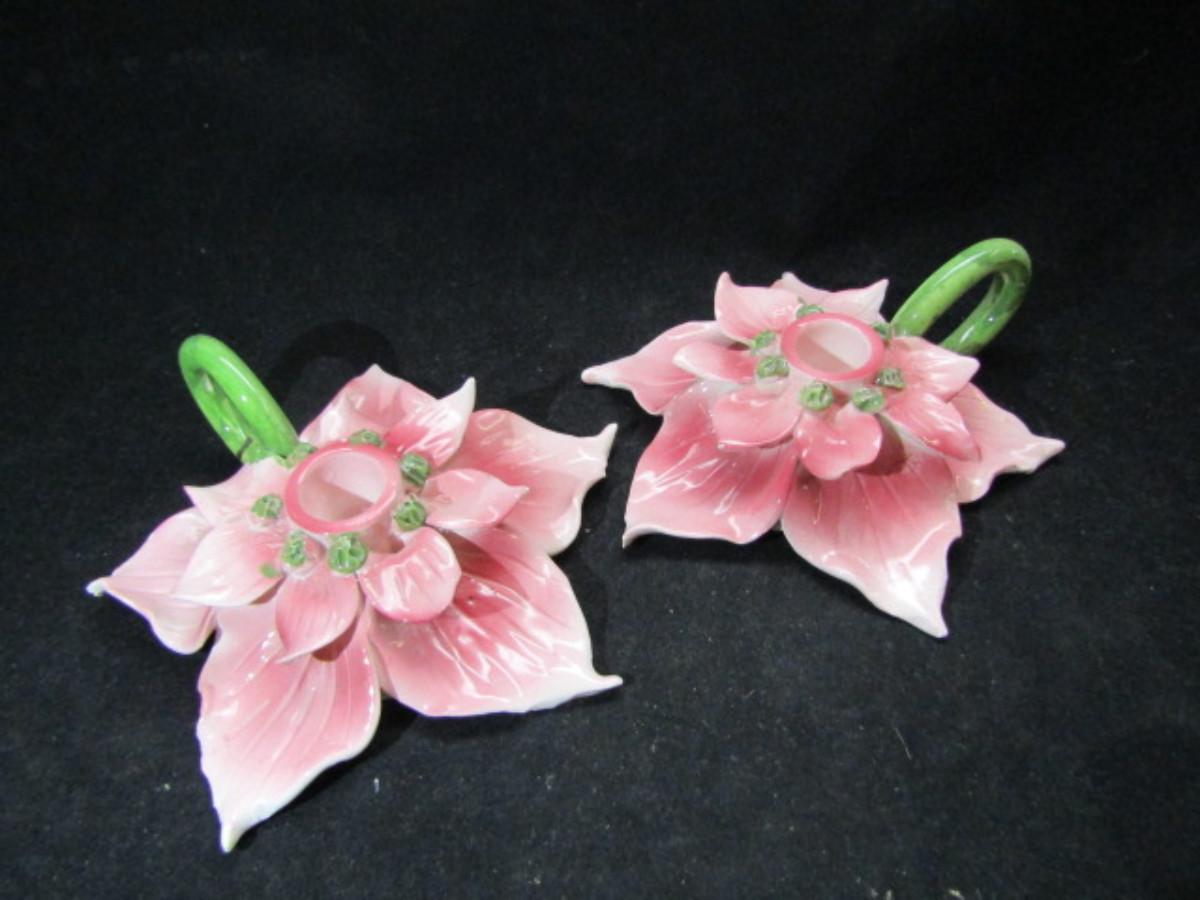 Pair of Ceramic Poinsettia Design Candle Stick Holders with Handles- Italian Made for Pacific Rim (#287)
