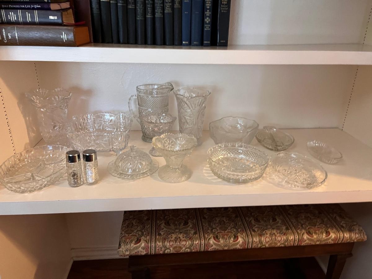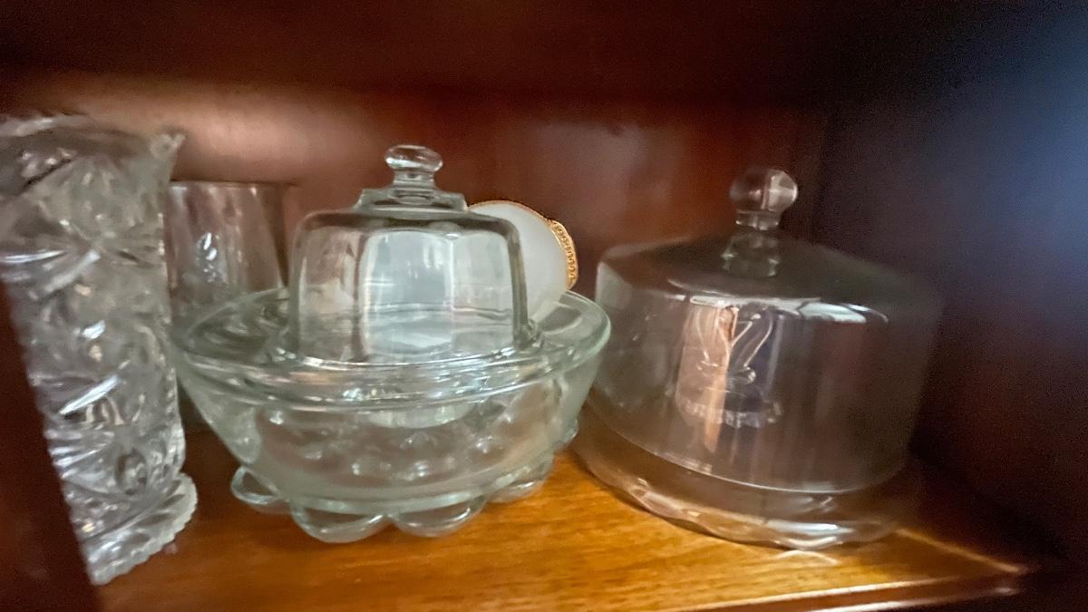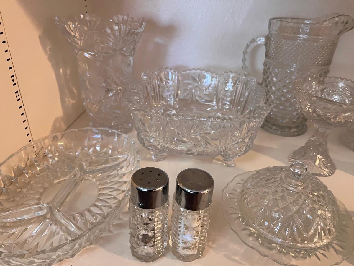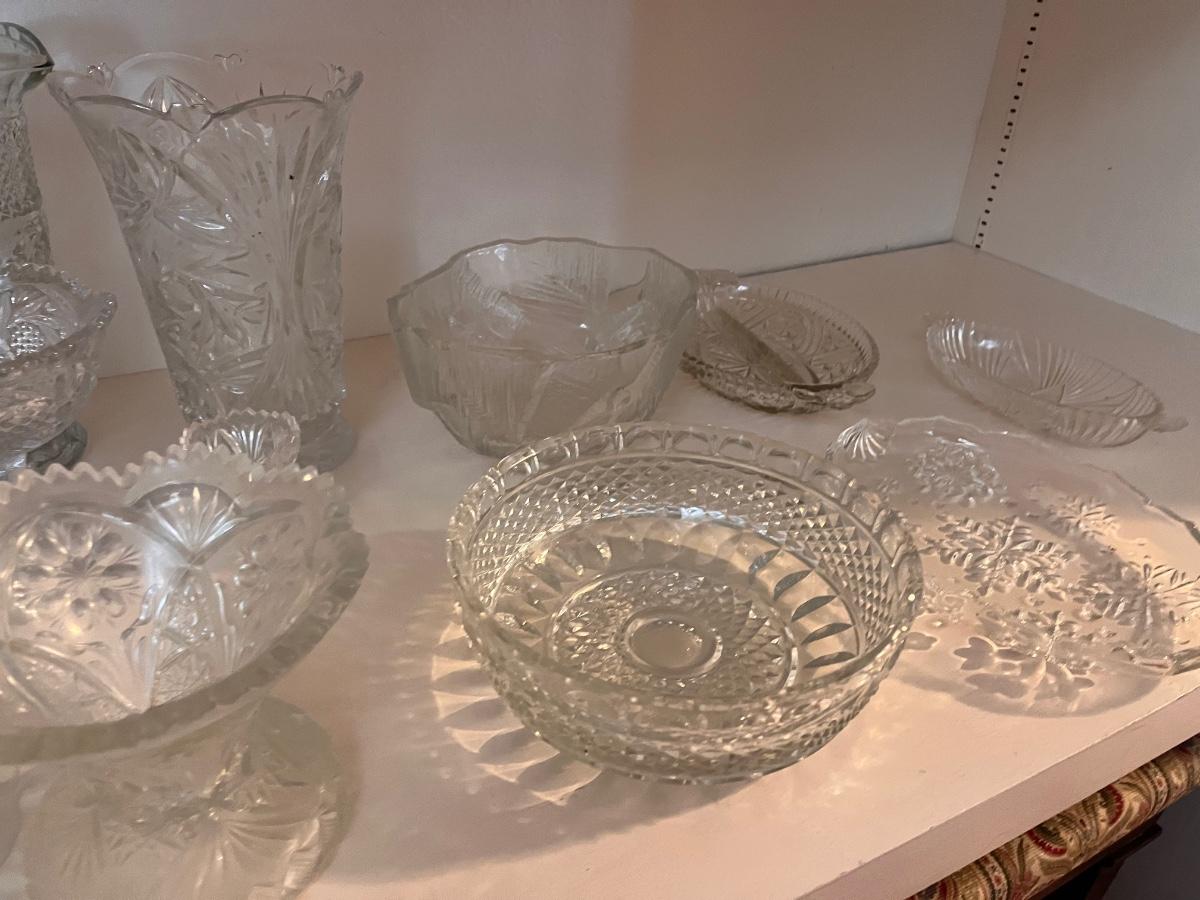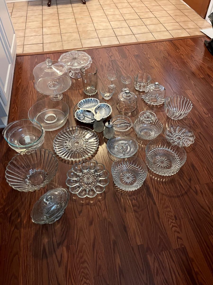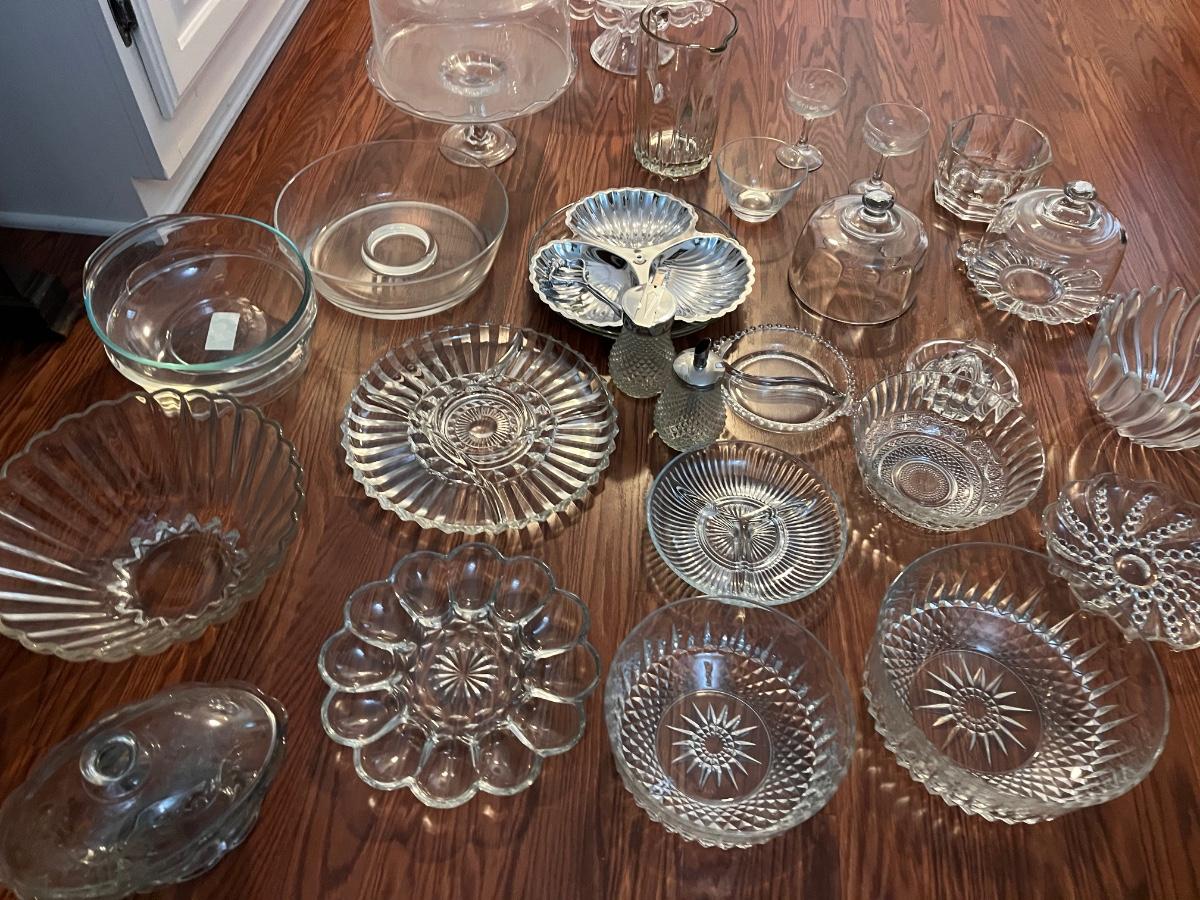 multiple types of crystal and glass bowls and serving dishes