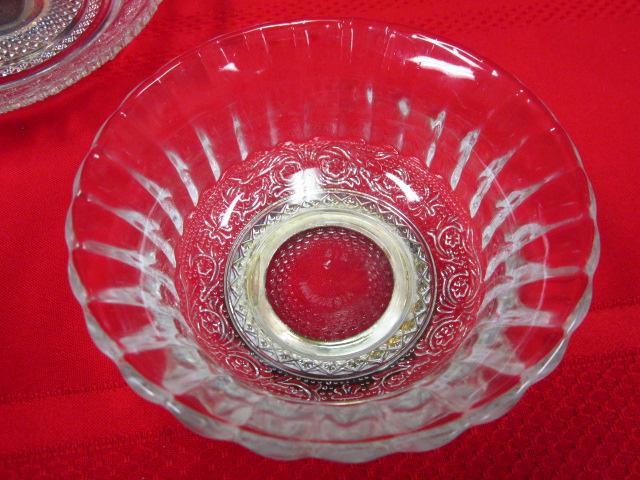 Crystal Candle Holder plate, Crystal Dish, Crystal bowl silver plate trim, 3 pcs