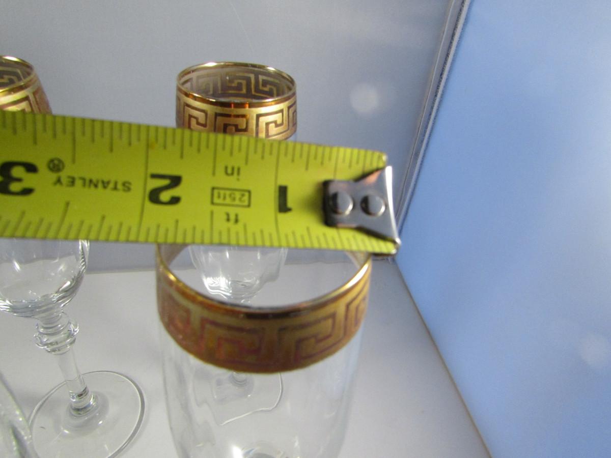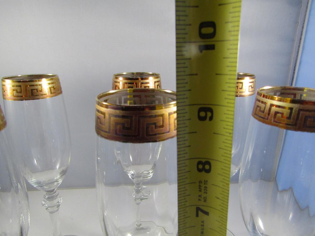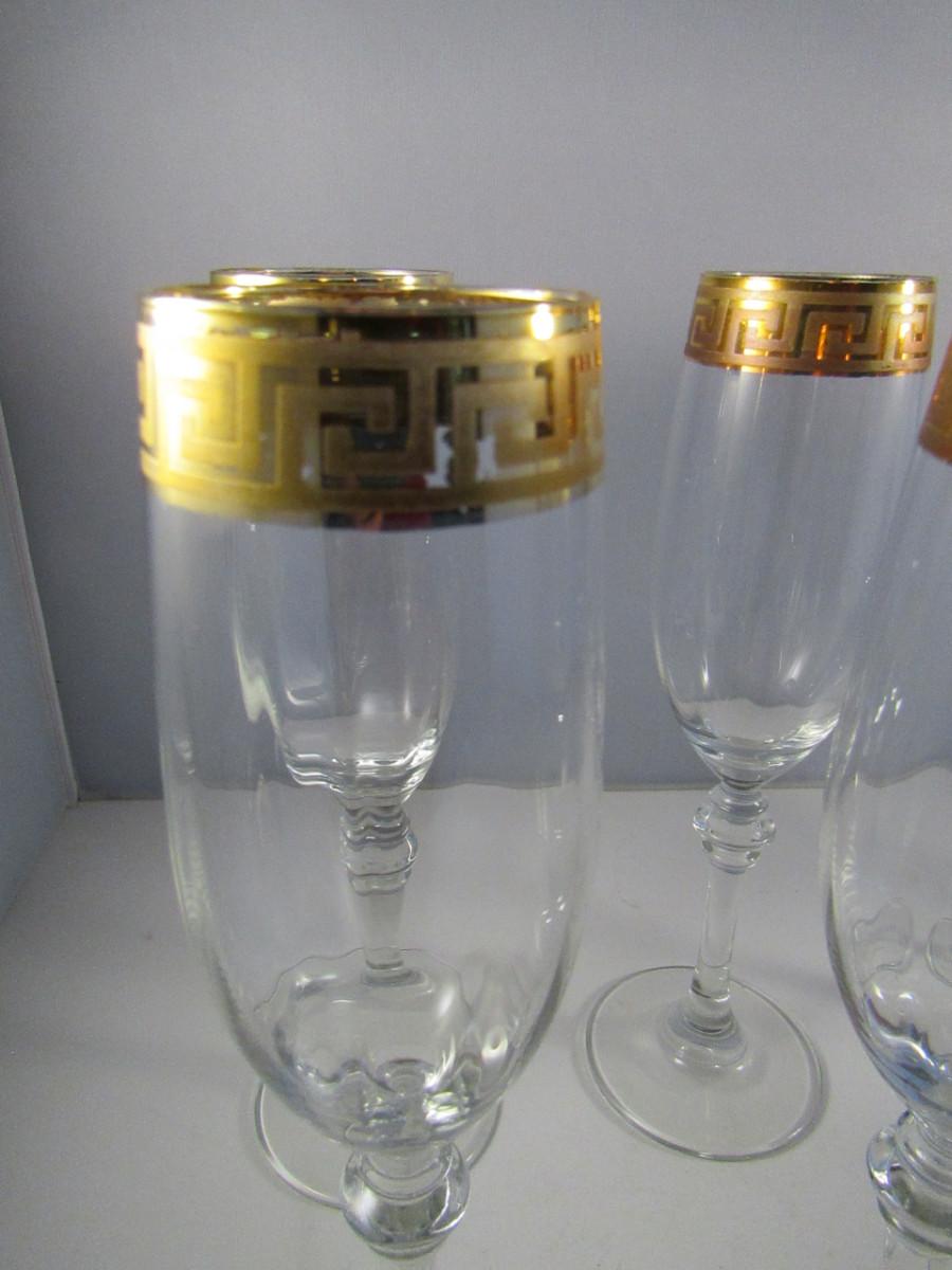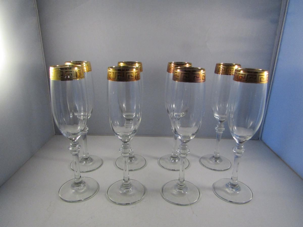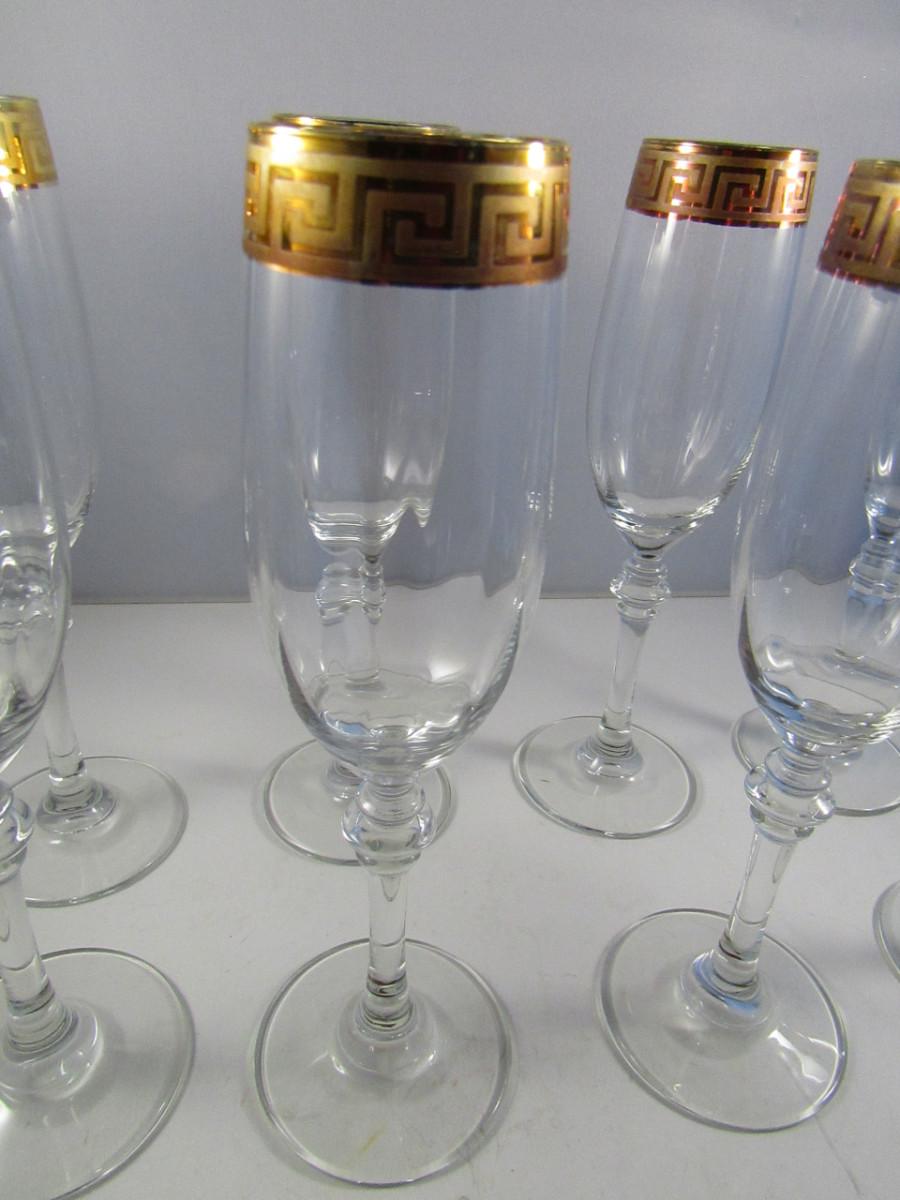 Crystal Champagne Flutes- Gold Greek Key Pattern- Set of Eight