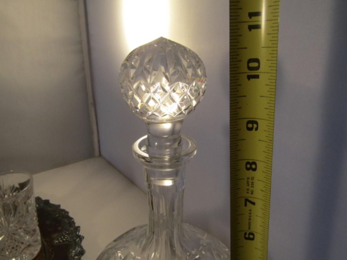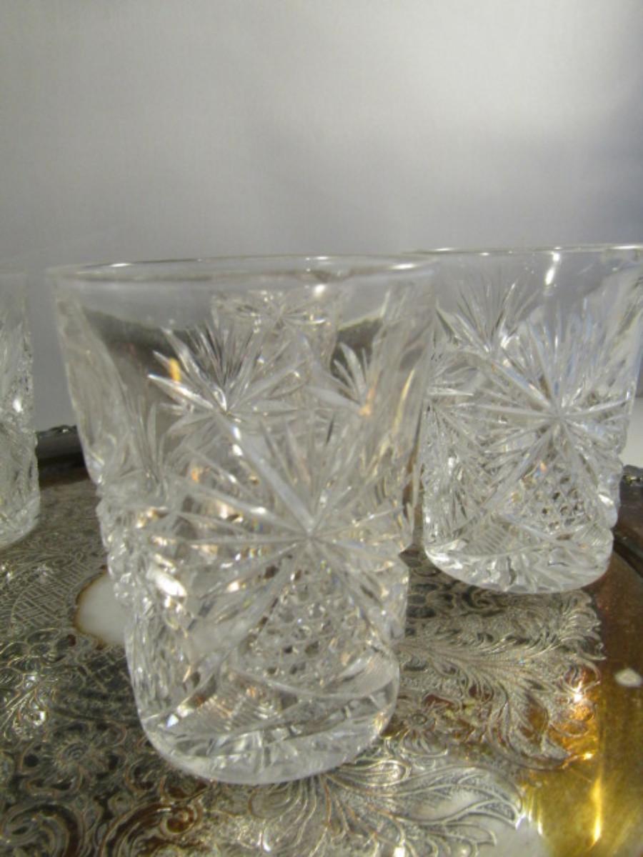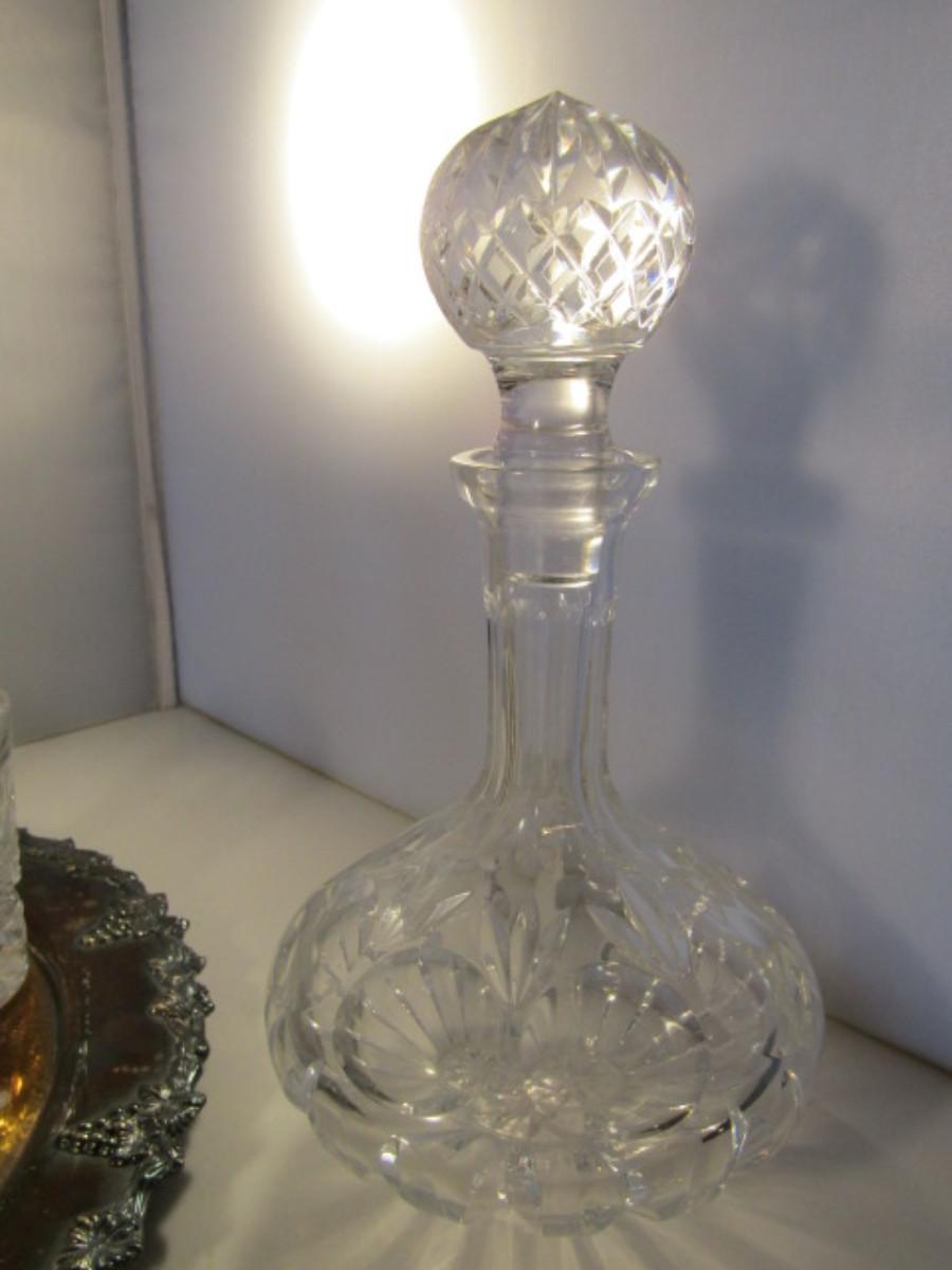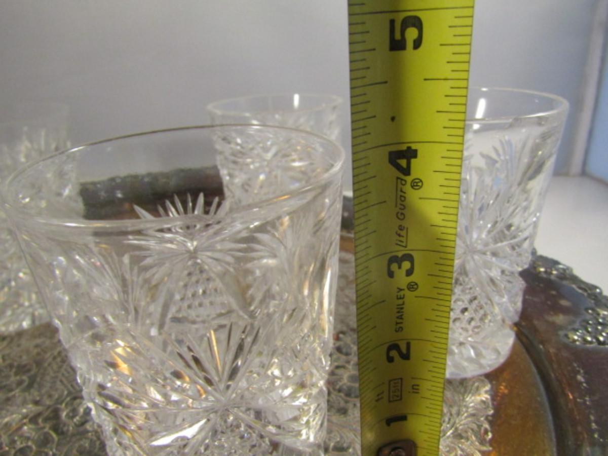 Crystal Cocktail Set with Silver Plated Tray. Set includes five glasses and one decanter with stopper.
