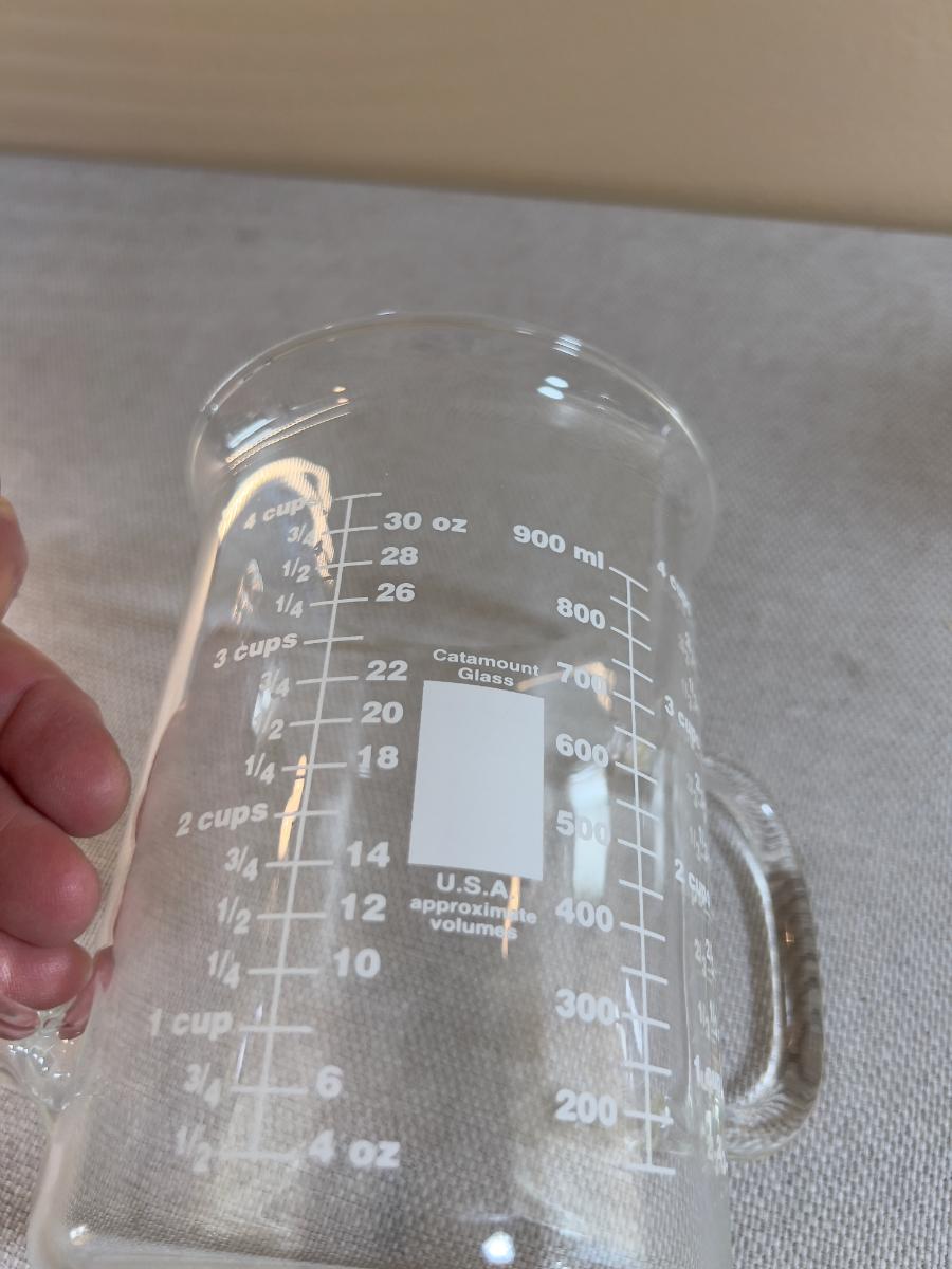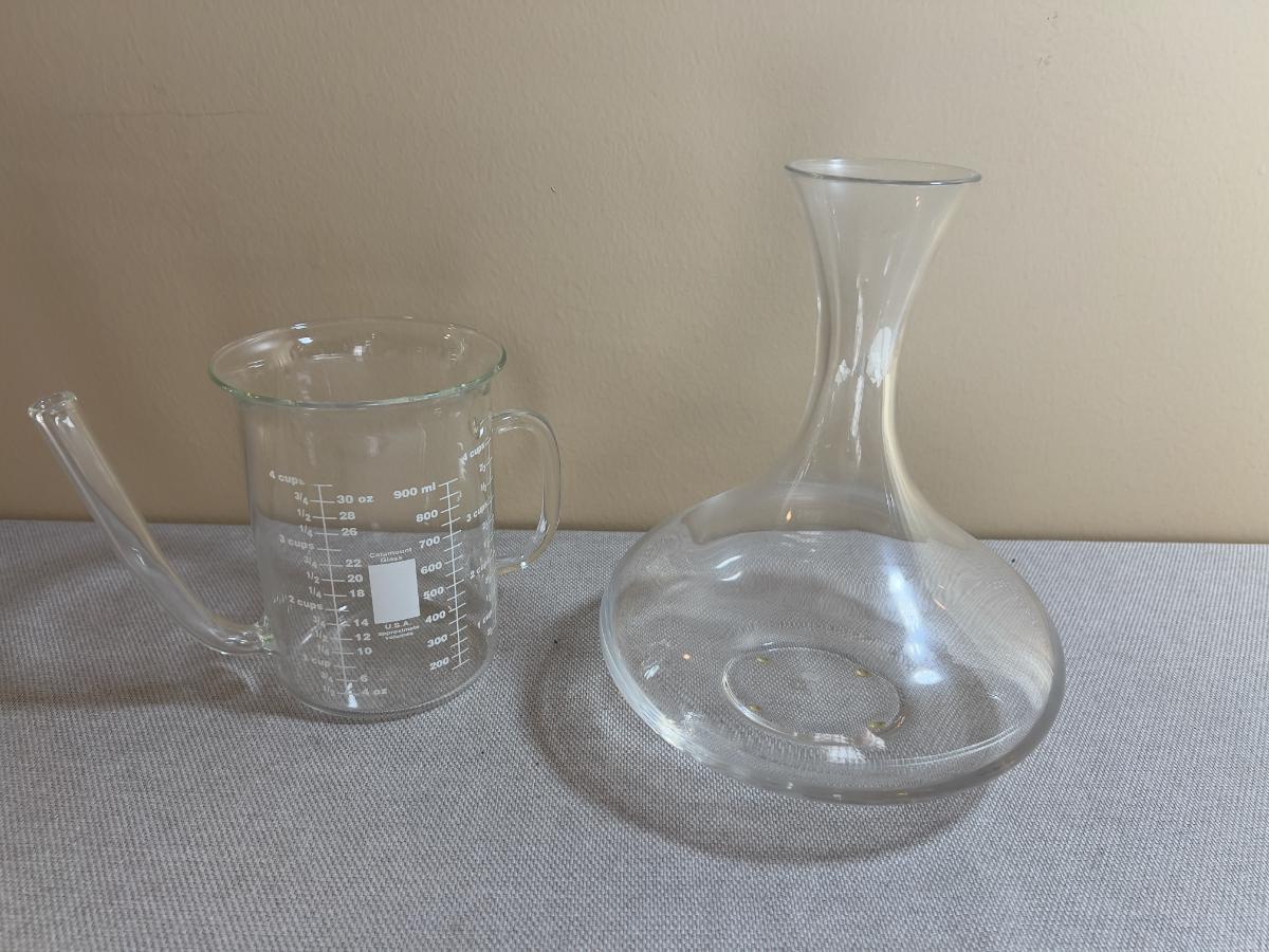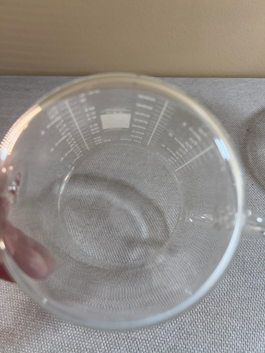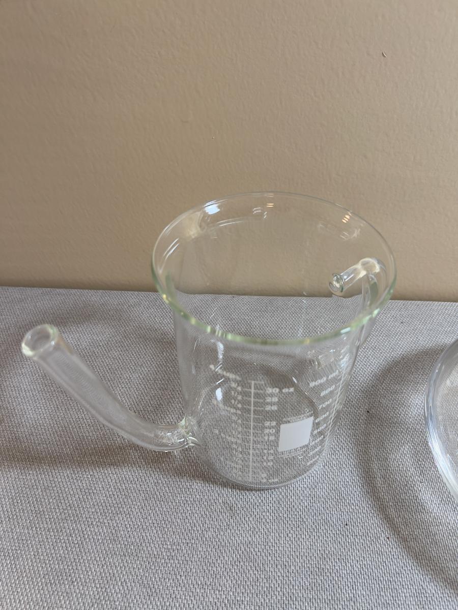 Used. Usable. No stoper! Measures liquids 11" Milliliters and Cups.