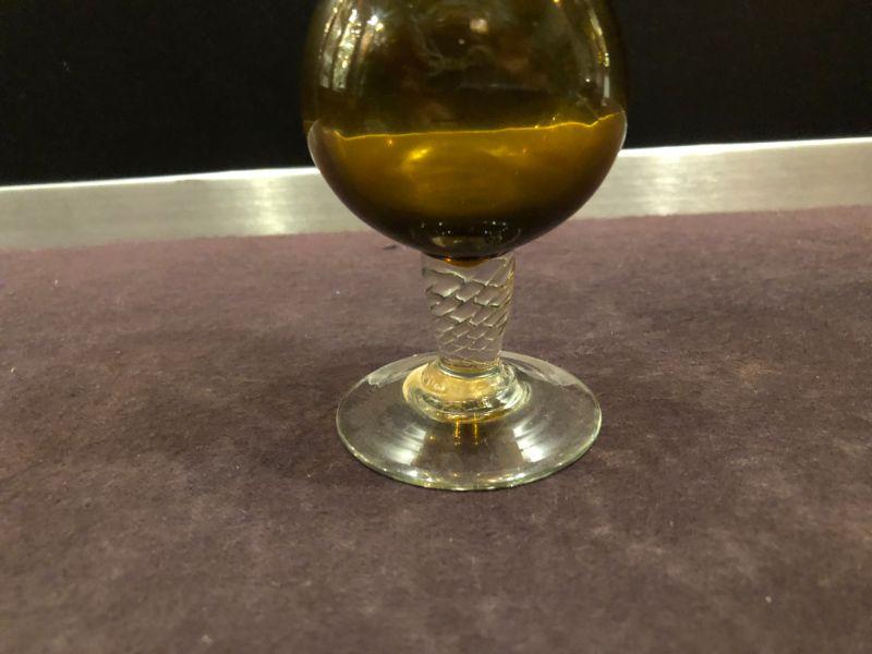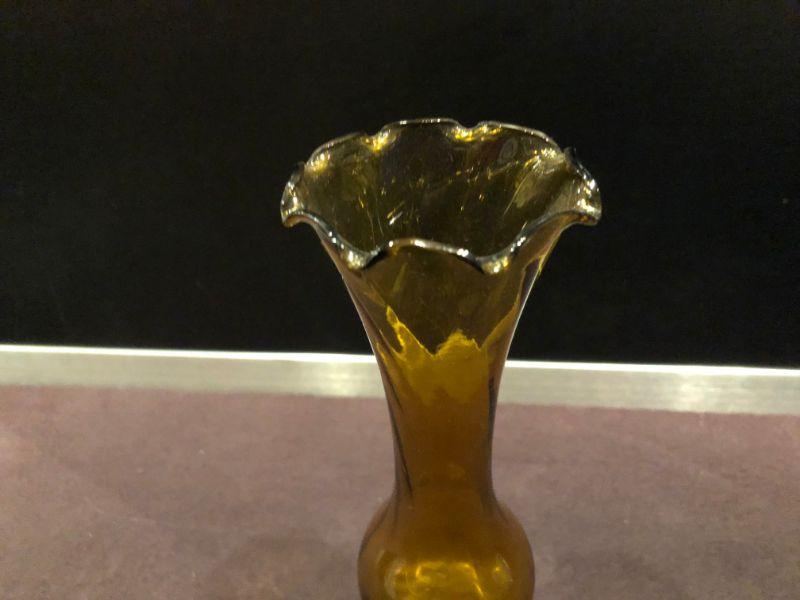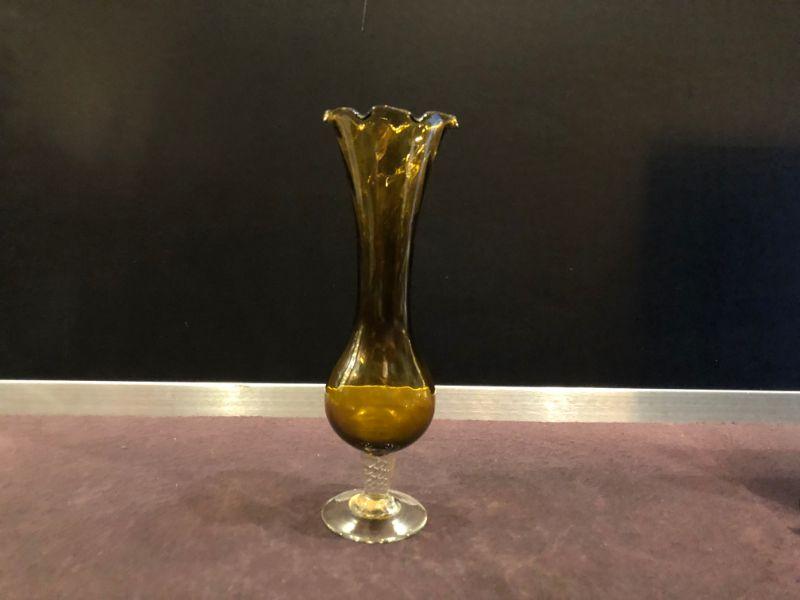 CRYSTAL CRIMP RIM AMBER GLASS BUD VASE WITH TWIST GLASS STEAM