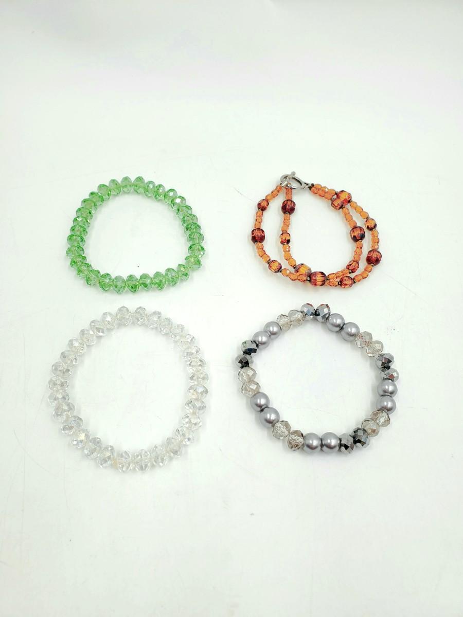 CRYSTAL CUT PLASTIC BEADED BRACELET BUNDLE OF 4