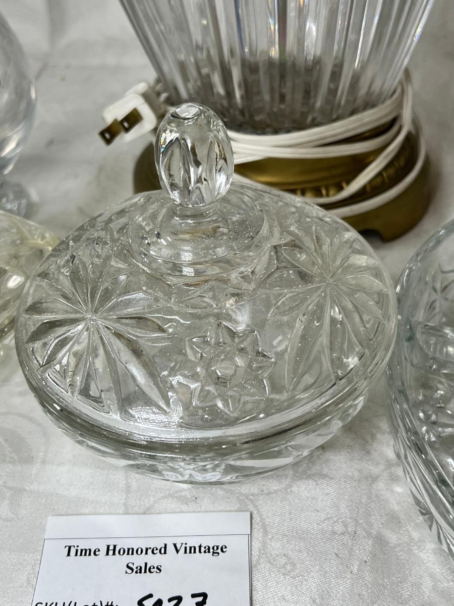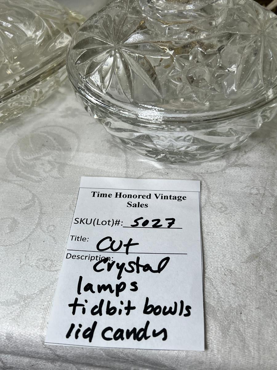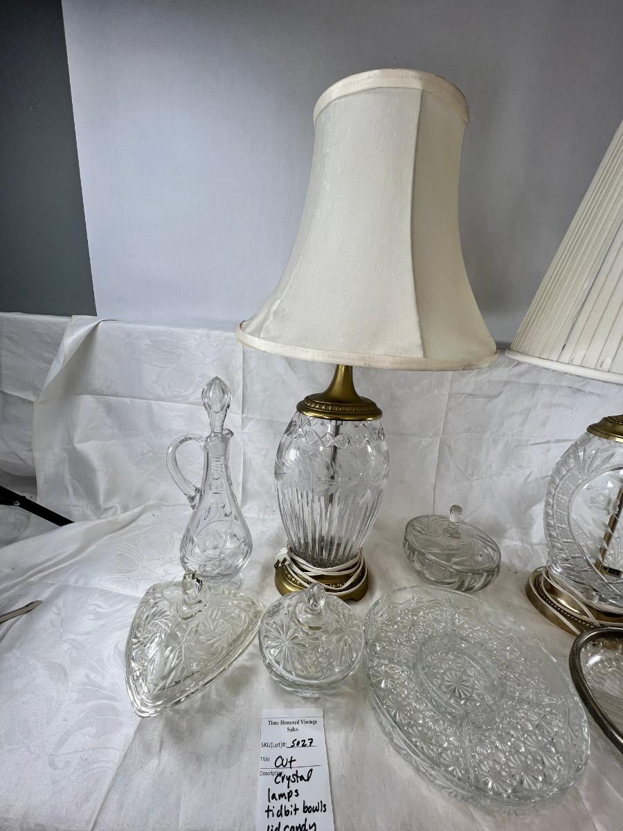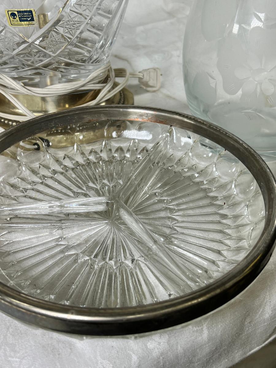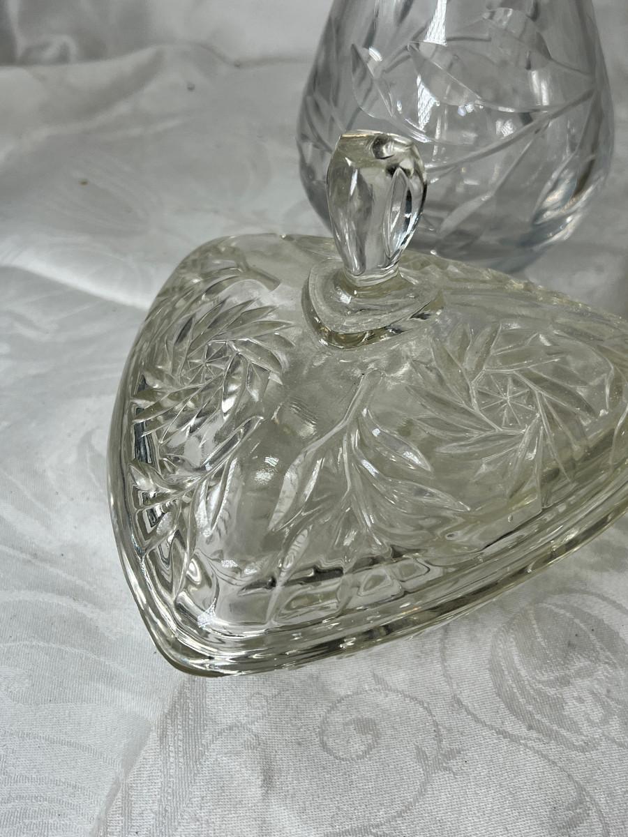 Crystal decanters, Silver plated rim bowl Lidded cystal candy bowls