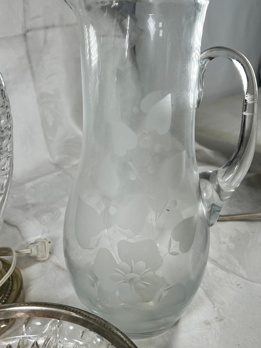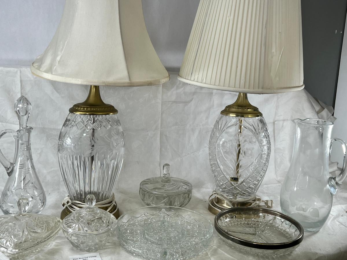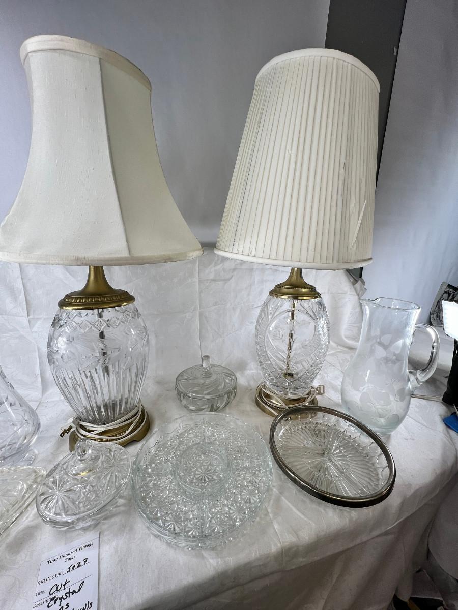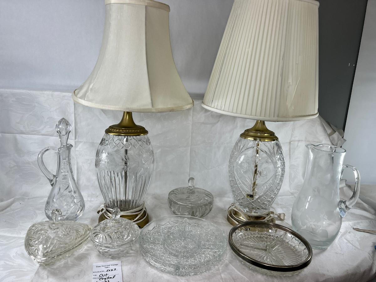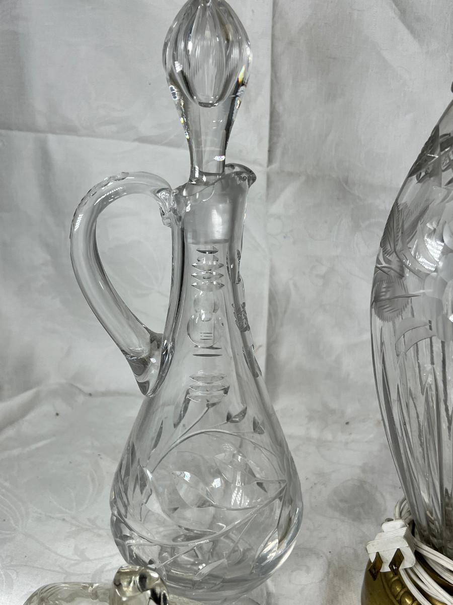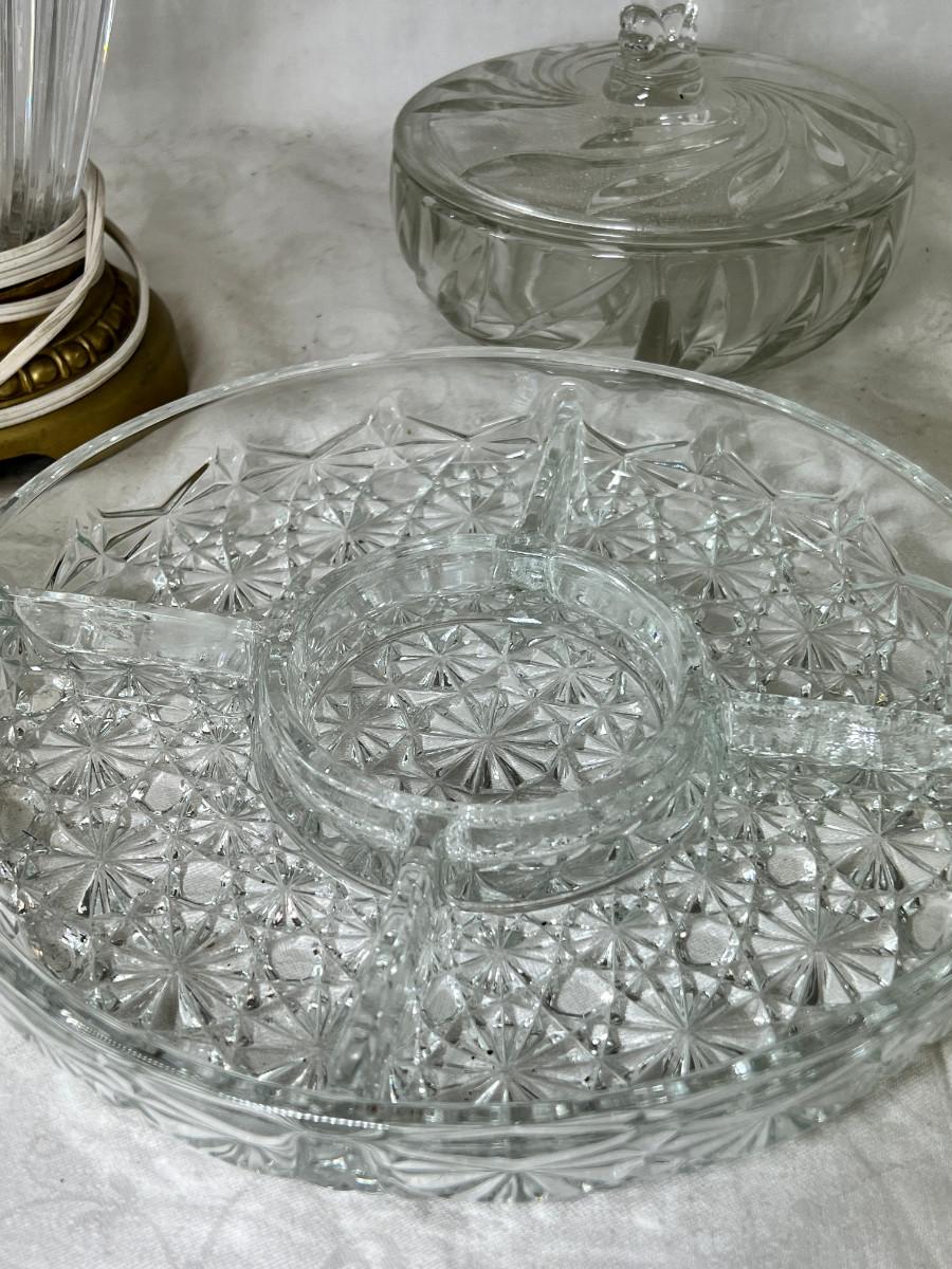 Crystal decanters, Silver plated rim bowl Lidded cystal candy bowls