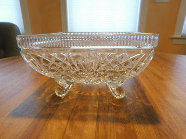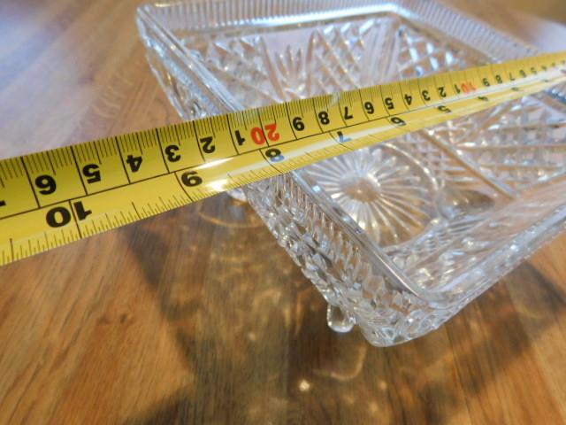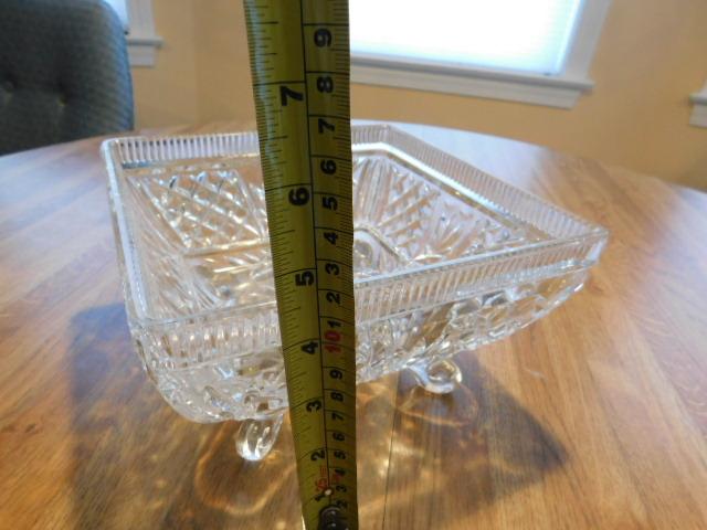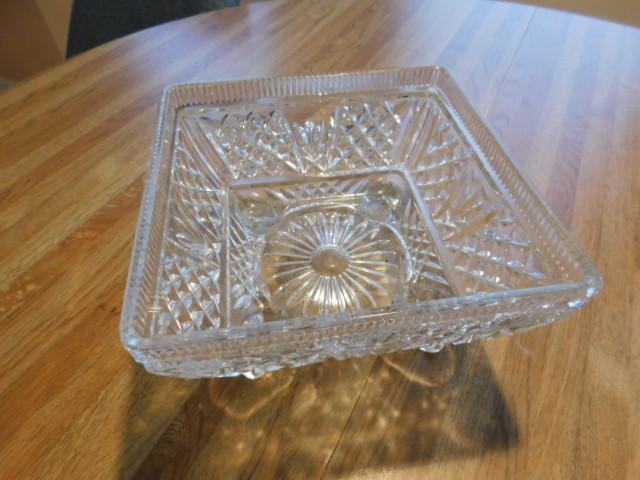 Crystal Footed Compote Square Bowl 8"x8"x4" heavy glass in good condition