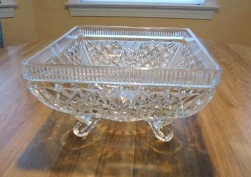 Crystal Footed Compote Square Bowl 8"x8"x4"