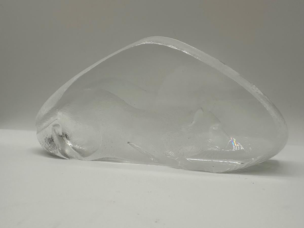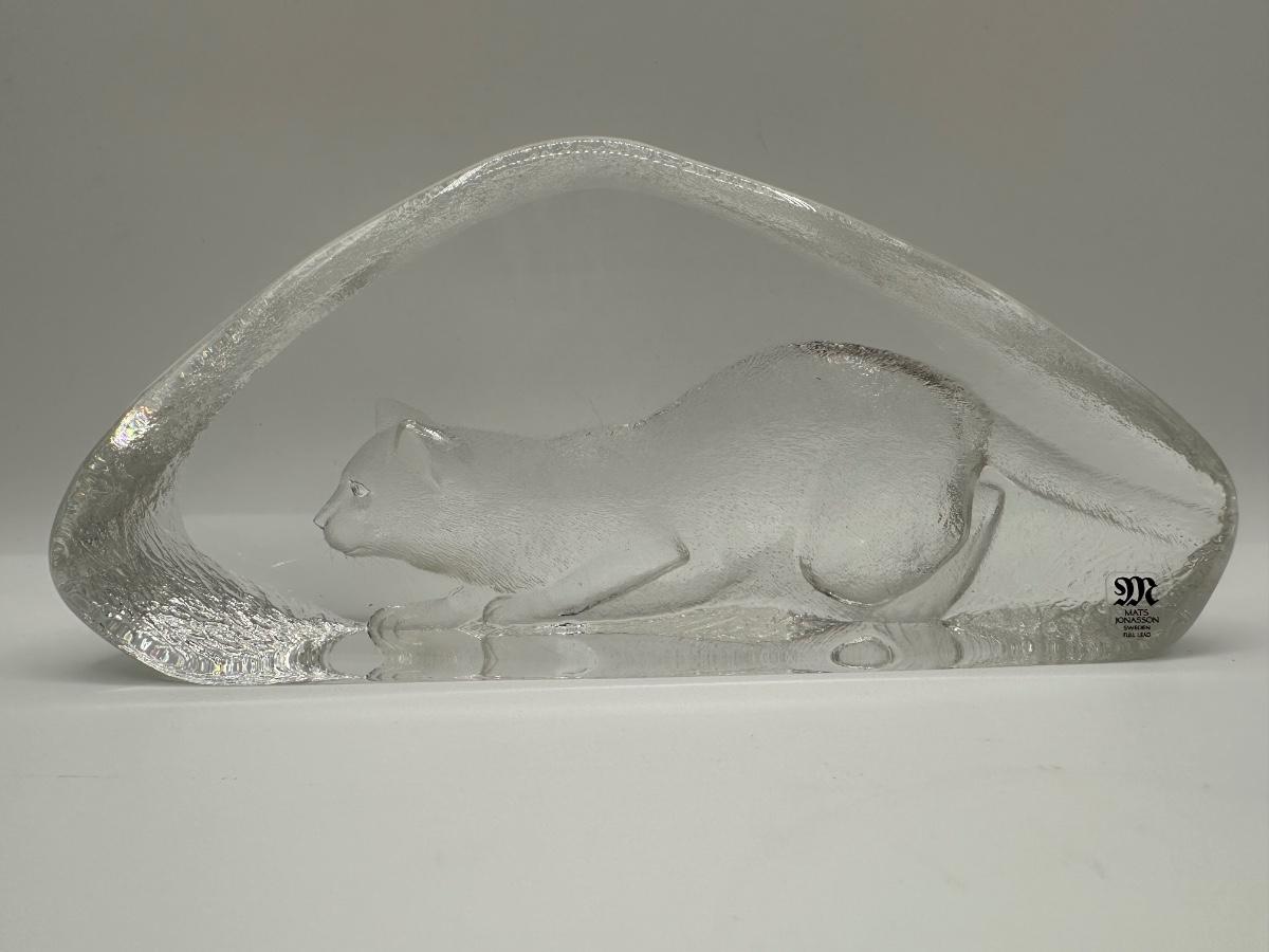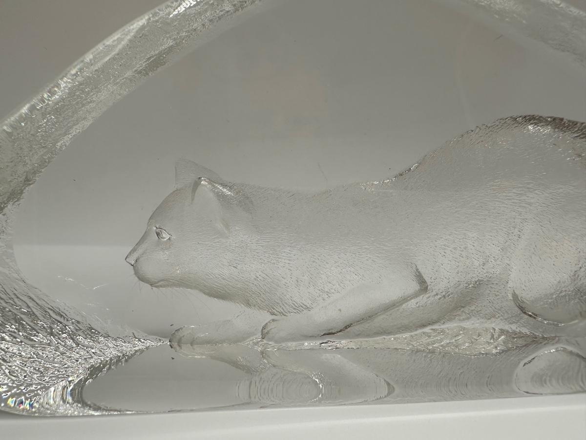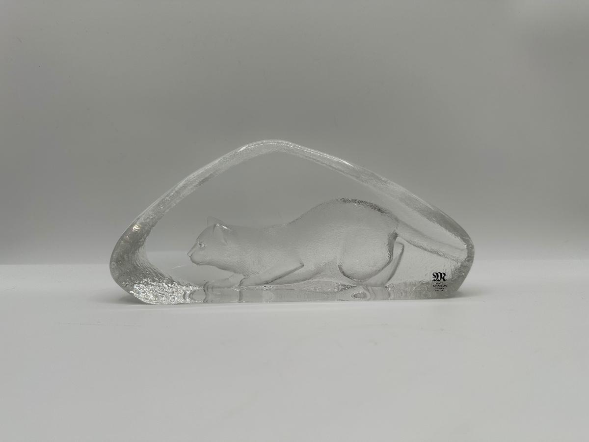 Crystal Glass Cat Sculpture by Mats Jonasson, Sweden