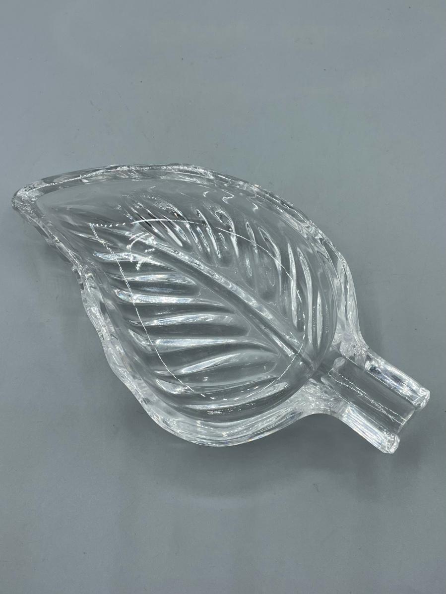 Crystal Glass Clear Leaf Shaped Small Trinket Dish Ashtray
