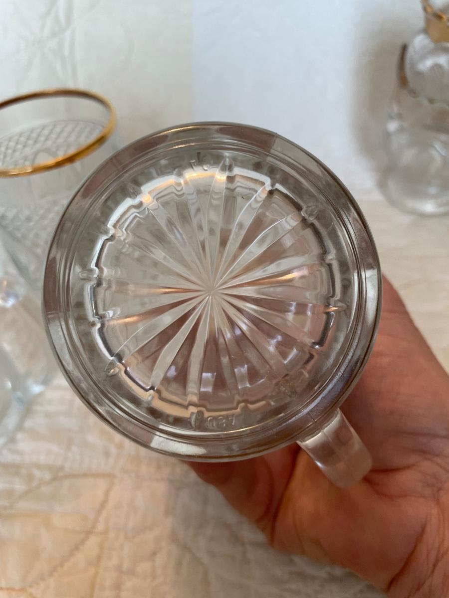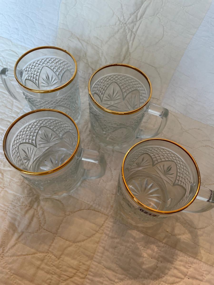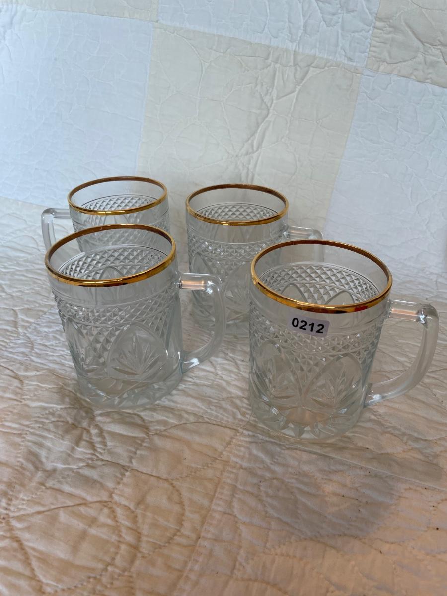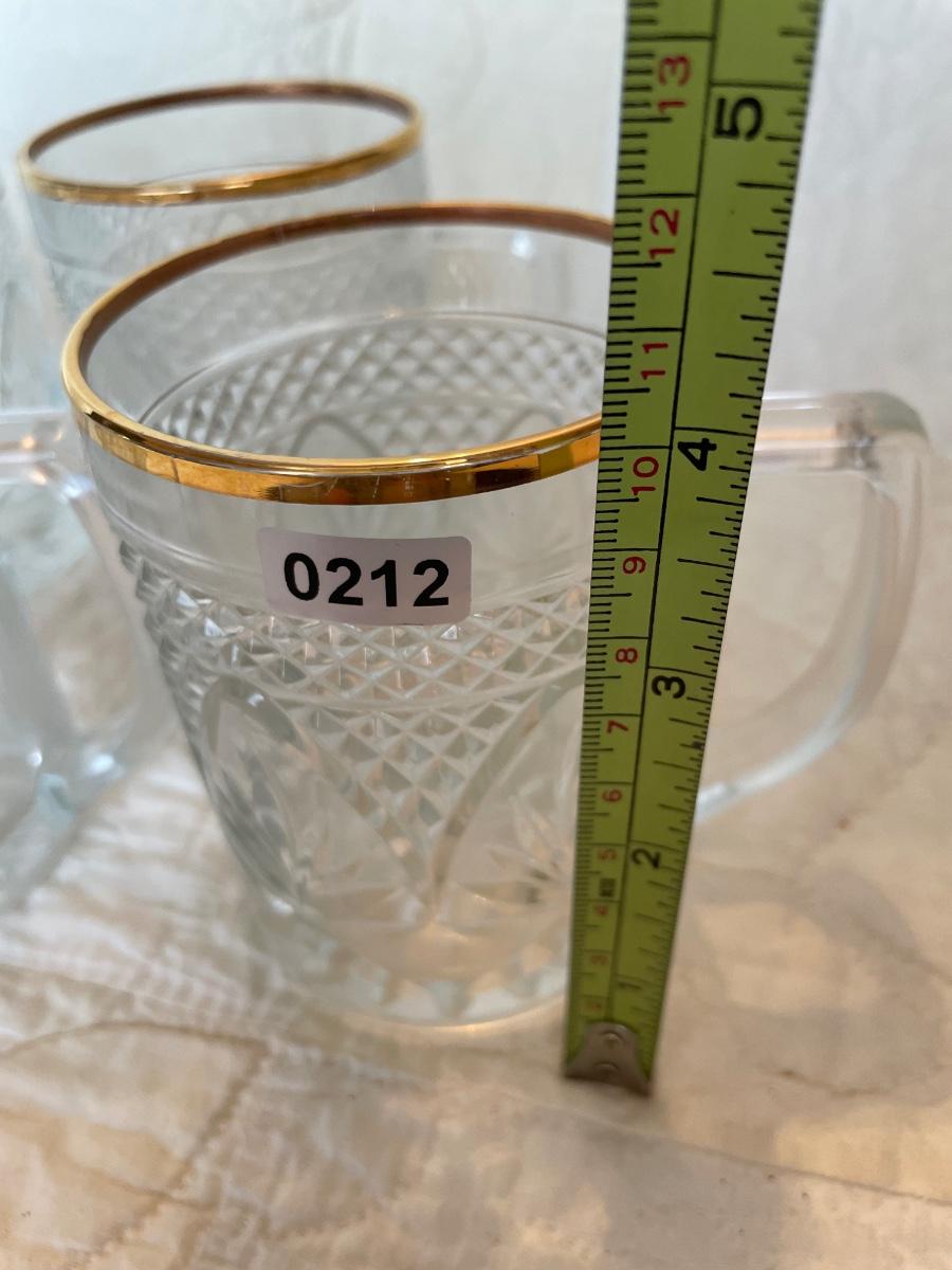 Crystal glass diamond fan cut mugs with gold trimmed ring
