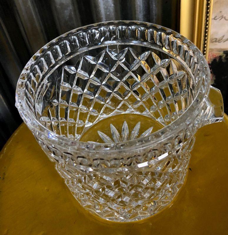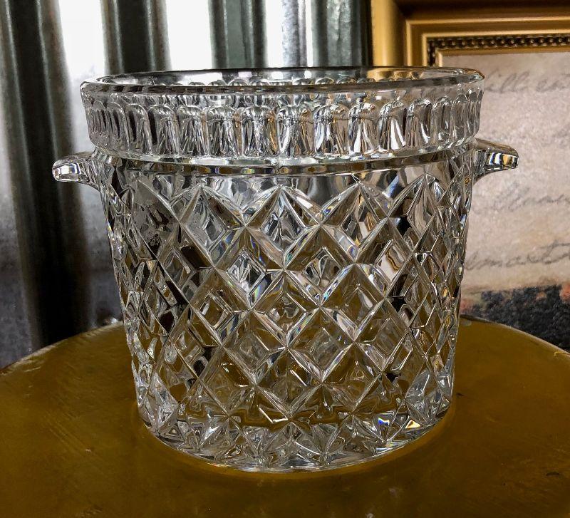 Here is a large crystal ice bucket...very good condition...a festive addition to your Holiday bar...