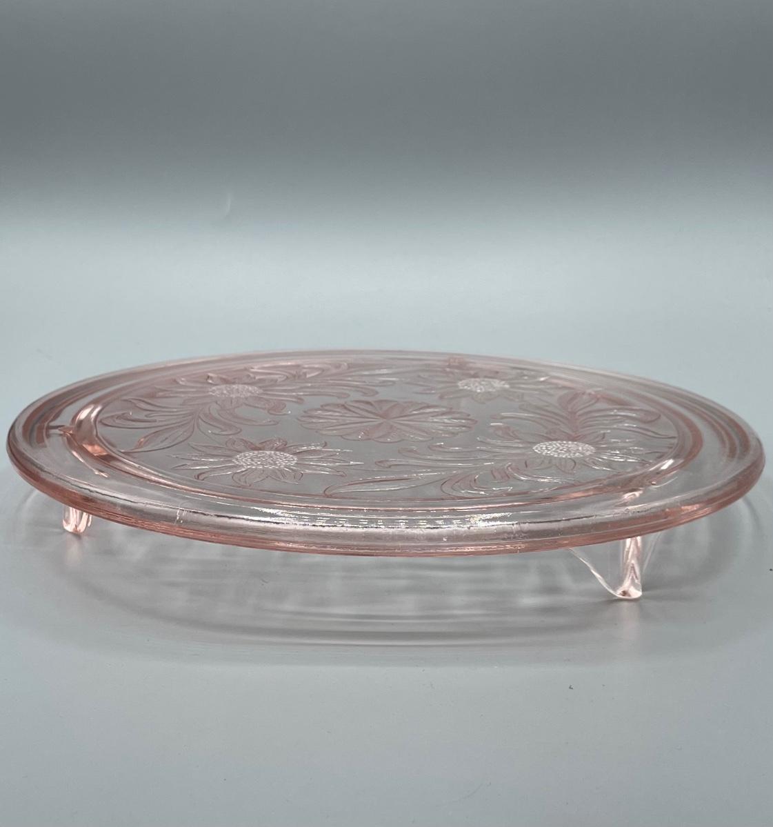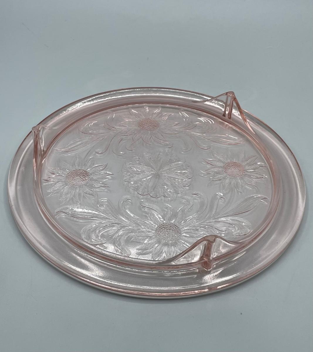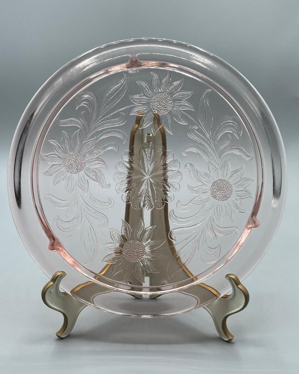 Vintage Jeannette Glass Pale Pink Sunflower Cake Plate