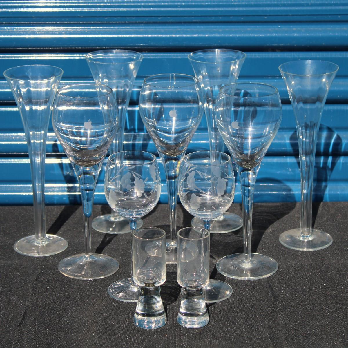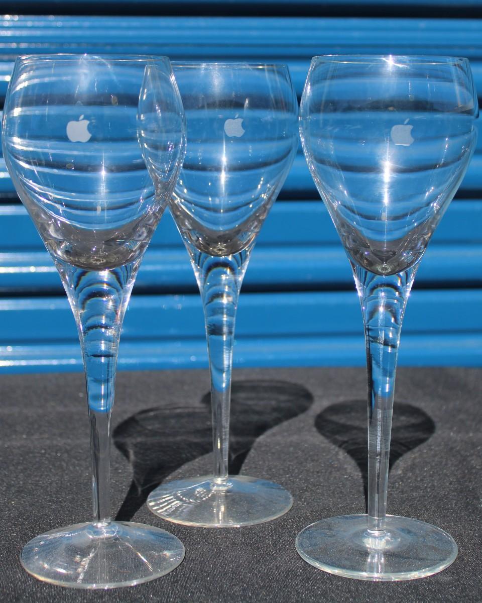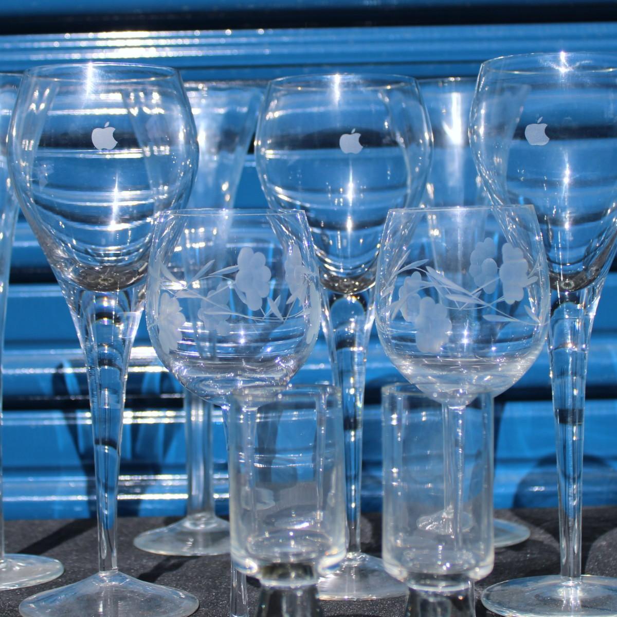 Crystal glass sets two shot glasses two small engraved wine glasses three large Apple wine glasses four champagne flutes