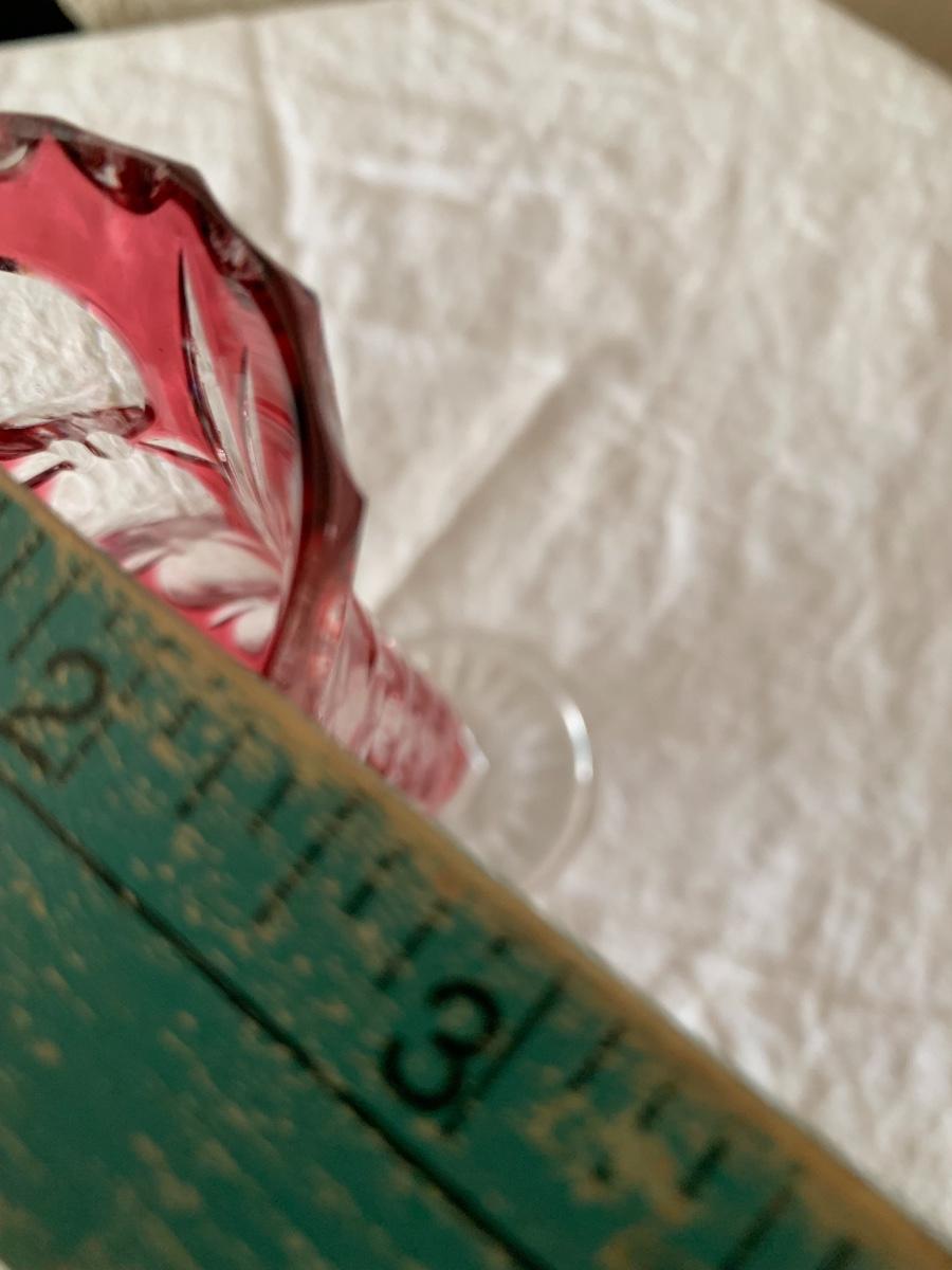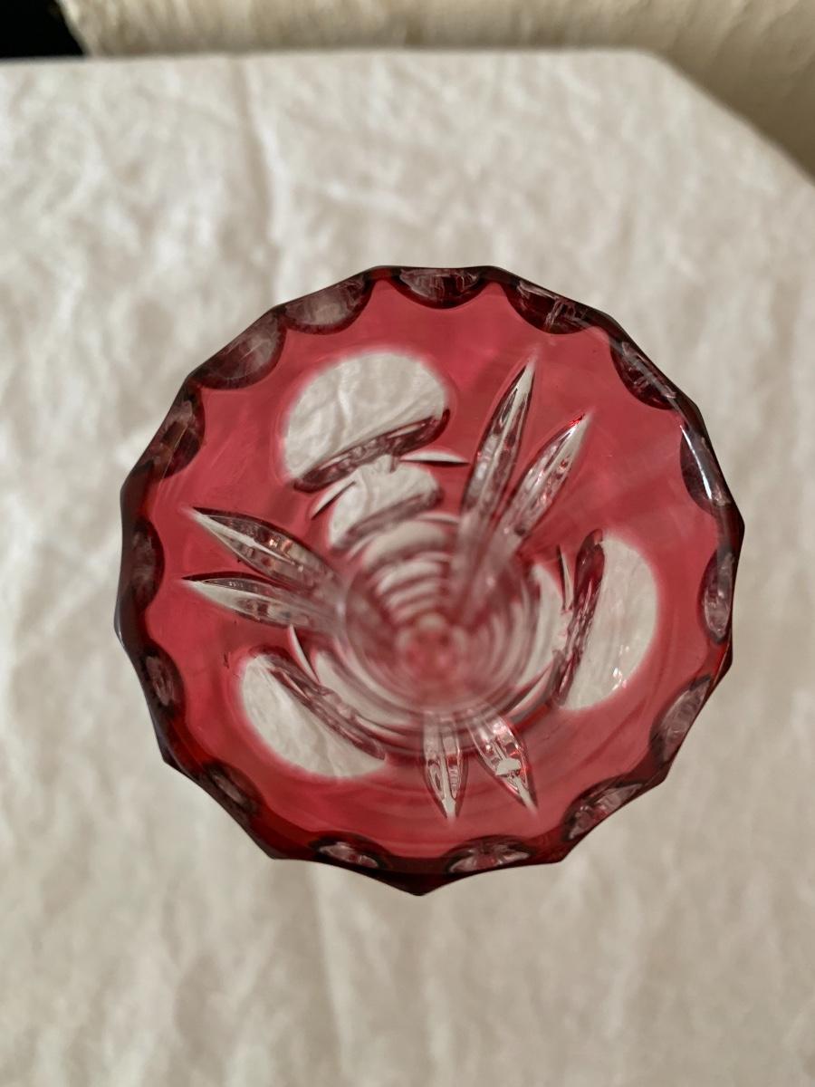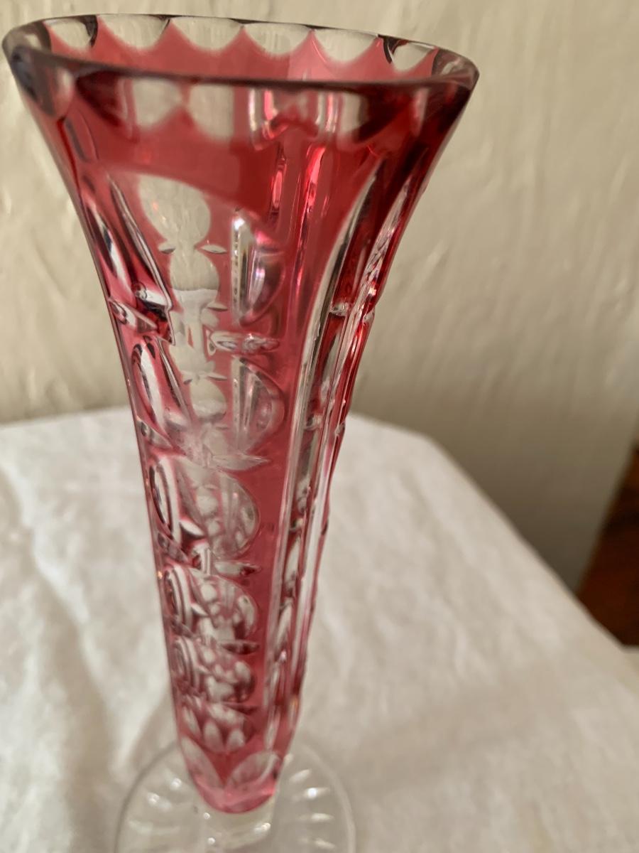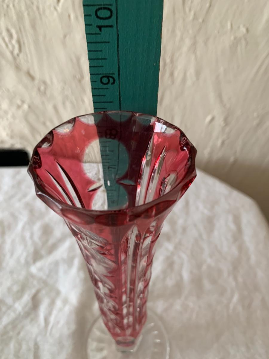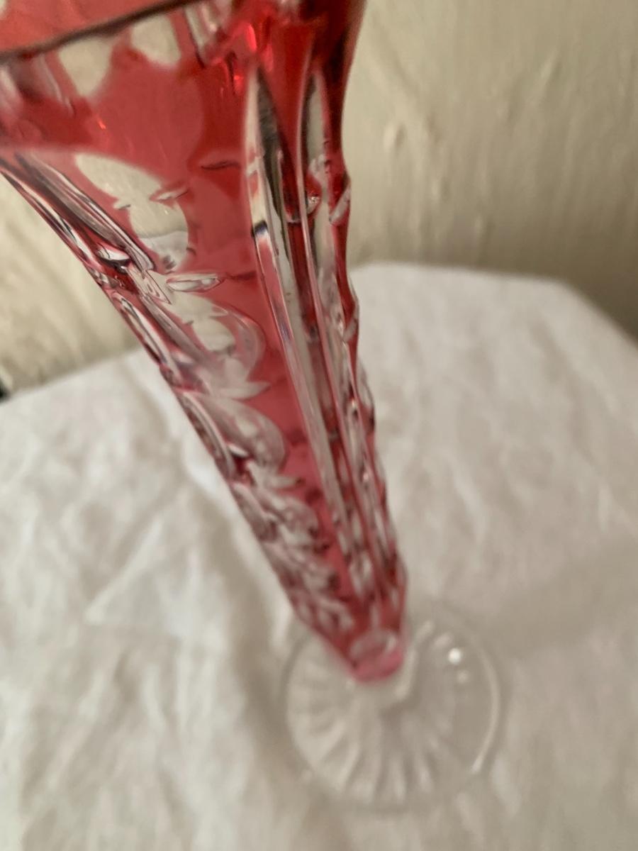 Lovely glass vase with cranberry cut to clear pattern