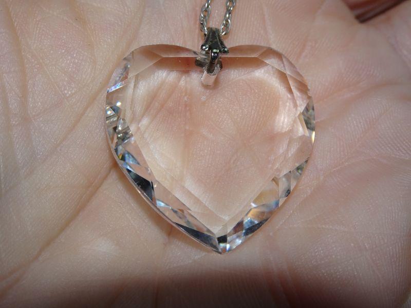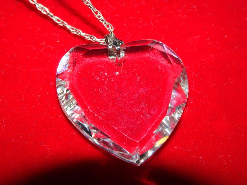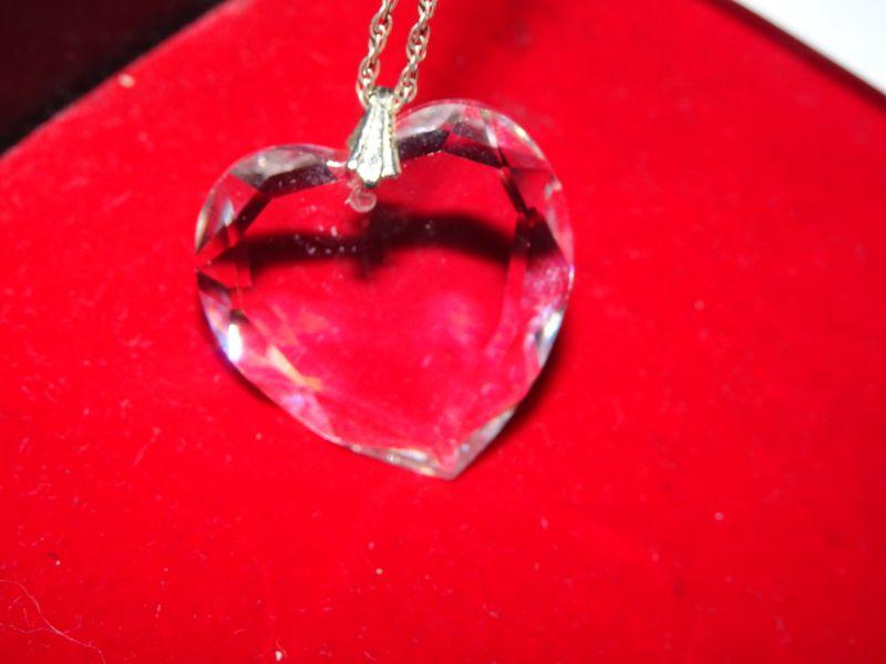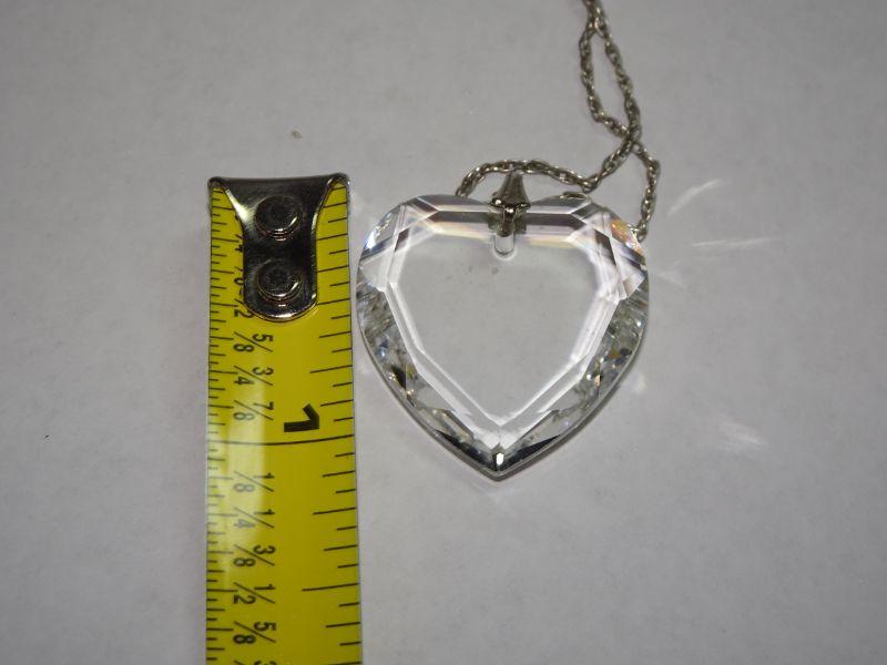 Crystal Heart Necklace, Silver Tone Chain, Sweetheart Necklace