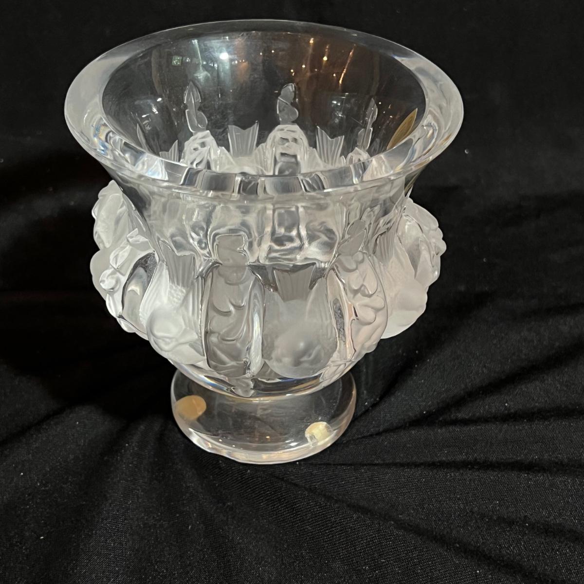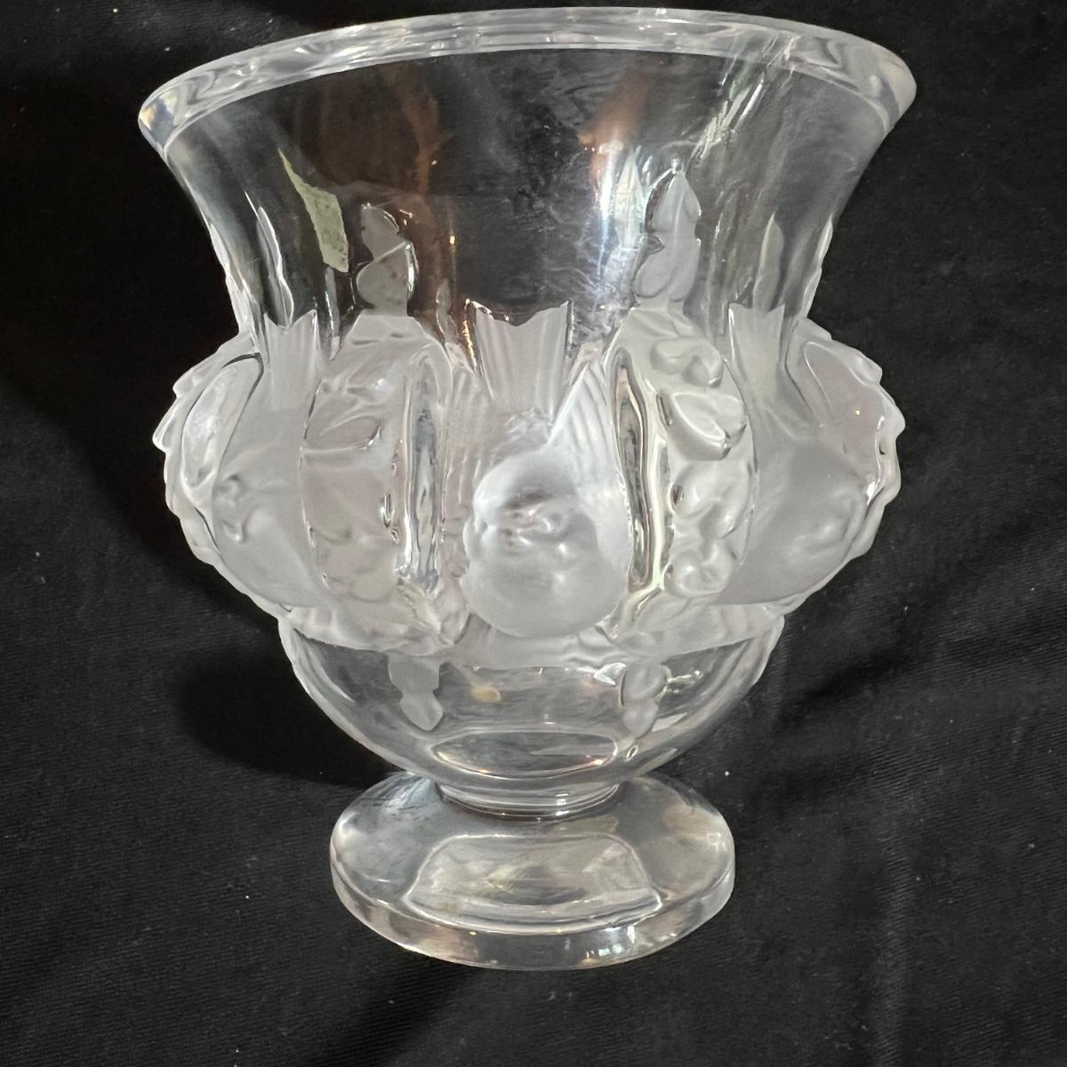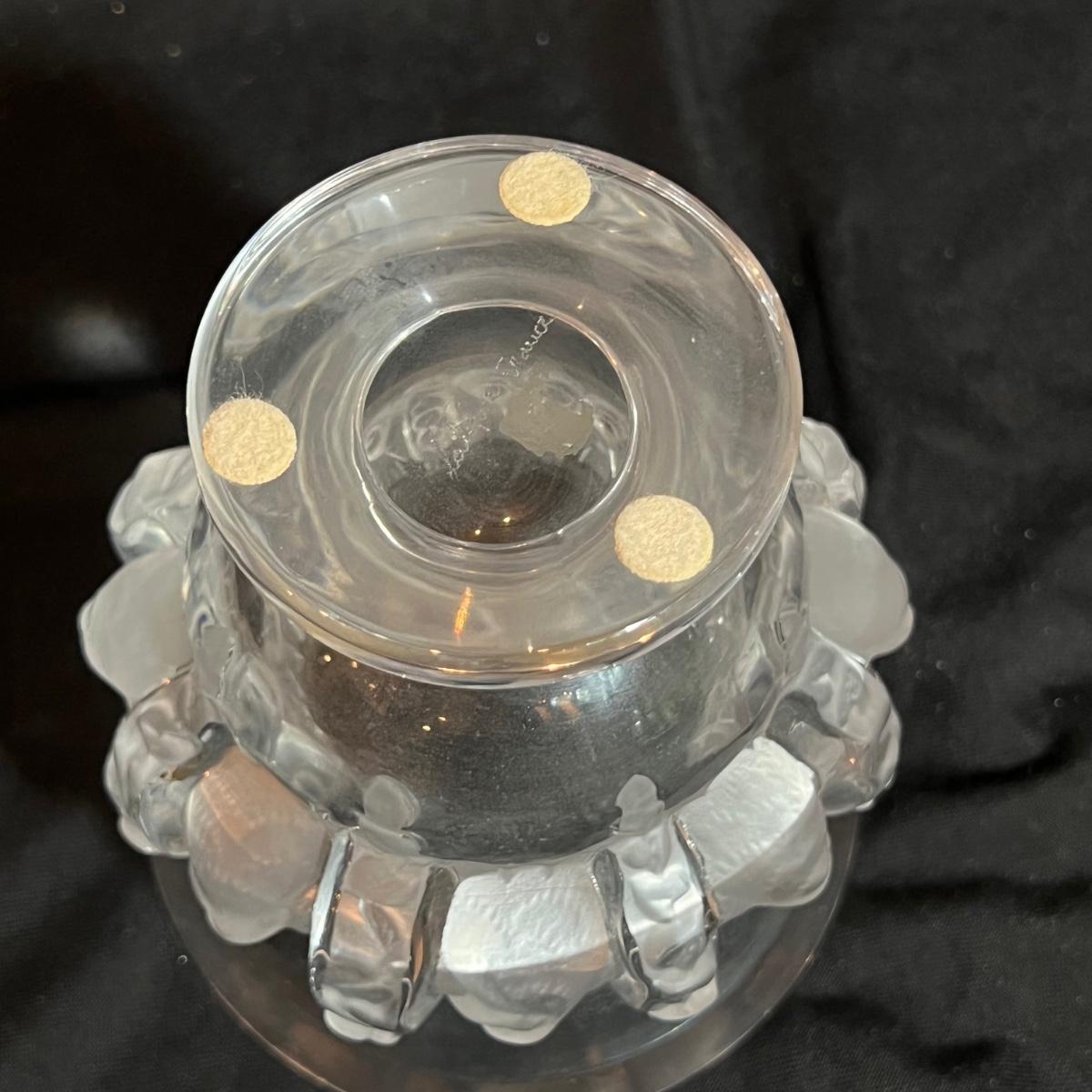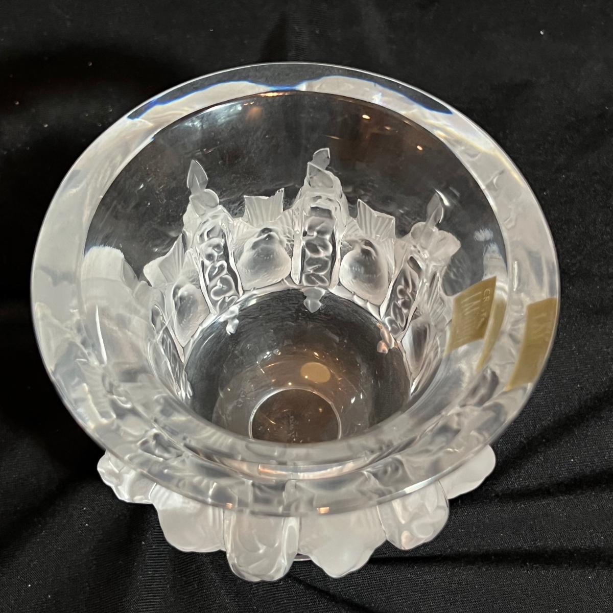 Three beautiful Lalique crystal pieces. The bird is largely frosted crystal and measures approximately 4.25” x 2.5” x 3.5”H. The rooster also largely frosted measures approximately 5.25” x 3” x 8.5”H. The bird urn measures 4.5”D x 5”H.