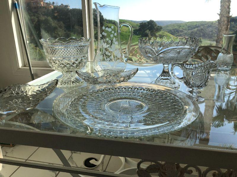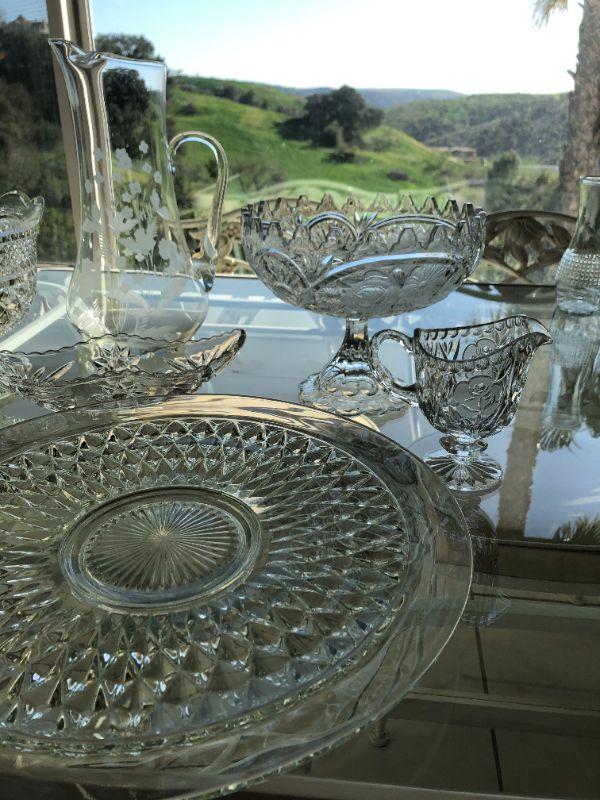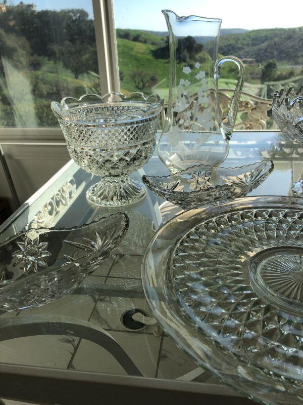 Crystal Lot, 7pc lot - platter, compotes, creamer, dishes YD#022-0190