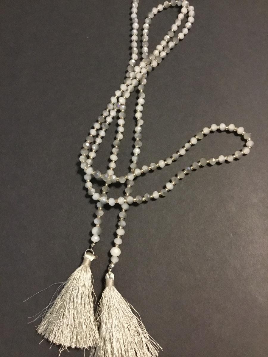 Crystal or glass faceted tassel scarf, necklace