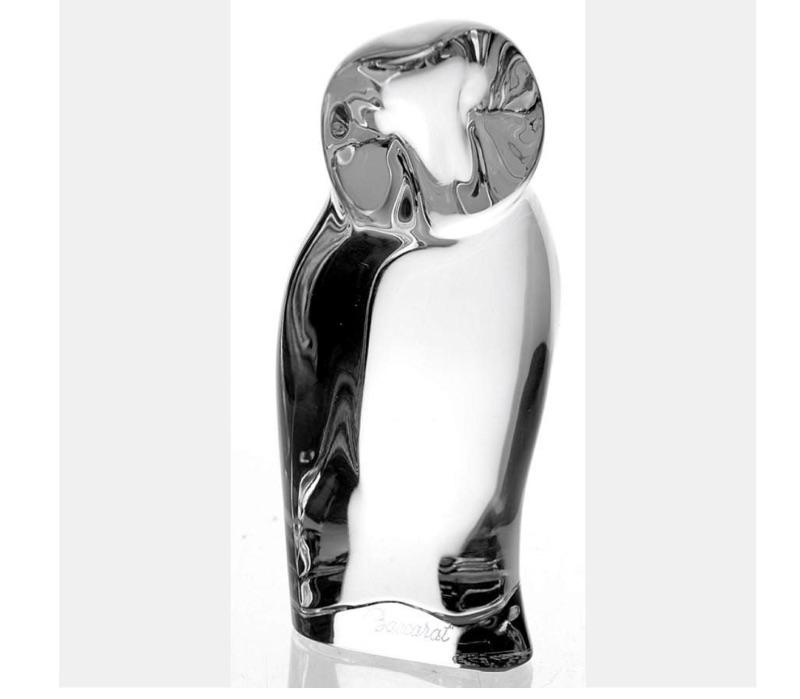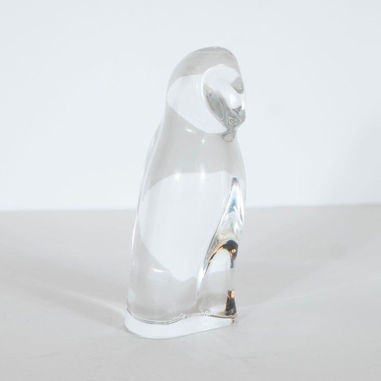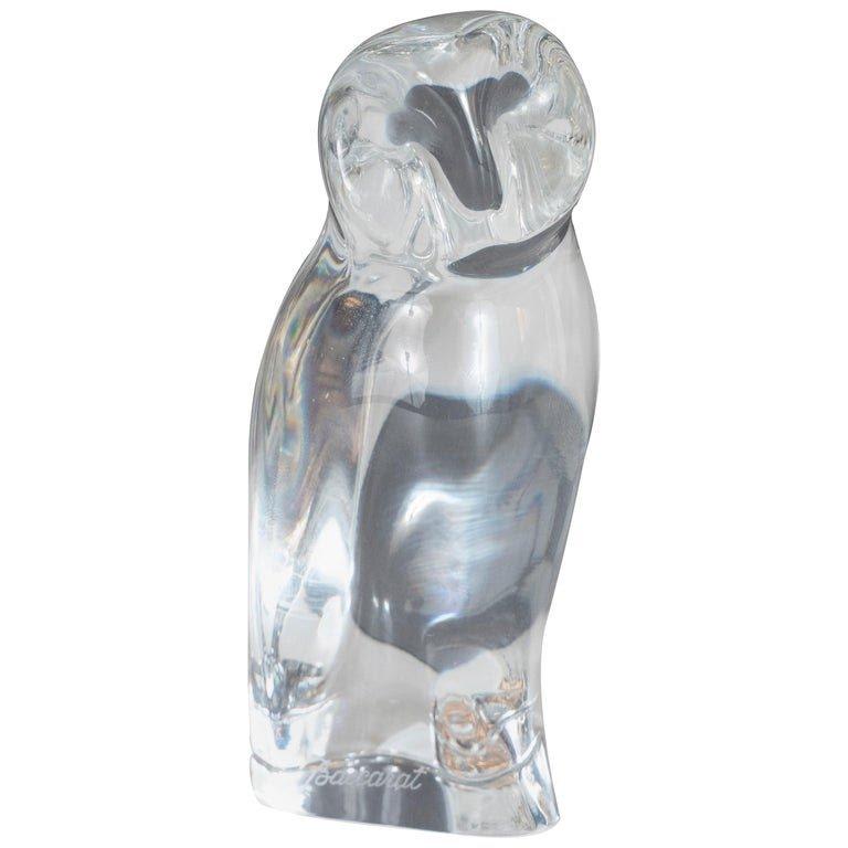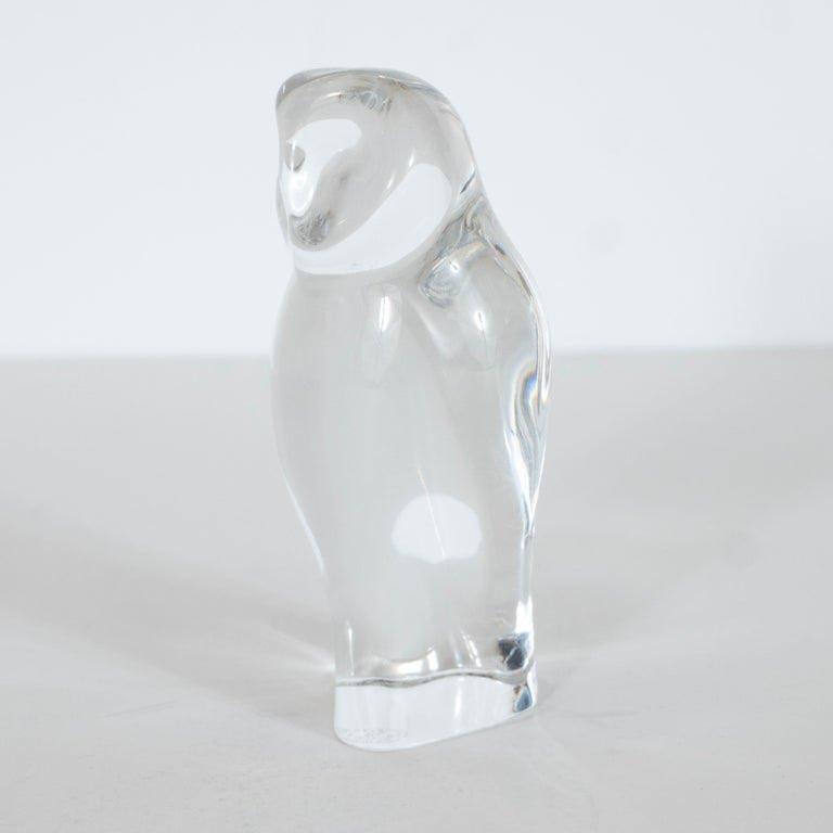 This elegant paperweight was realized by Baccarat- one of the world's finest makers of crystal products since 1765 in France, circa 1960. Artisanally created in translucent crystal, the piece suggests a stylized perched owl. With its elegant form and impeccable construction by one of the great luxury brands in modern history, this piece promises to be a winning addition to any home or office, and also a wonderful gift. It bears the maker's acid etched stamp on bottom reading "Baccarat France". Excellent condition, Â