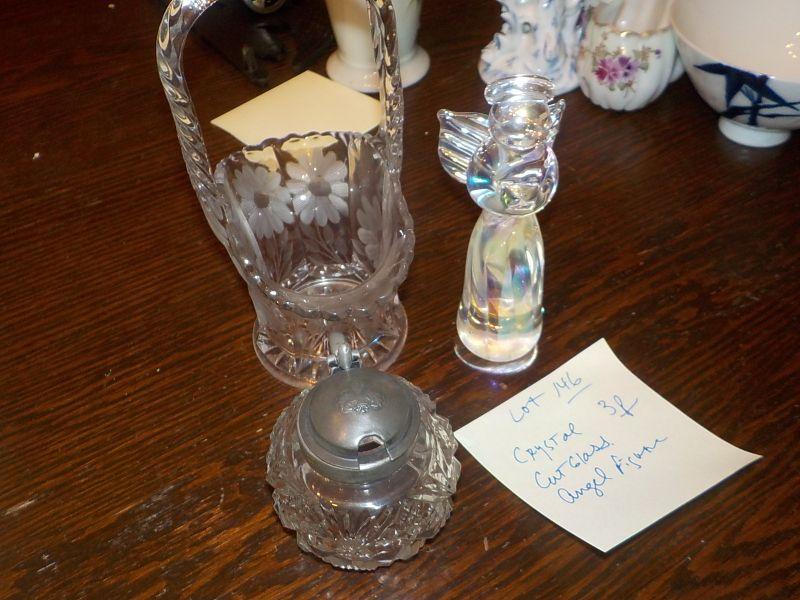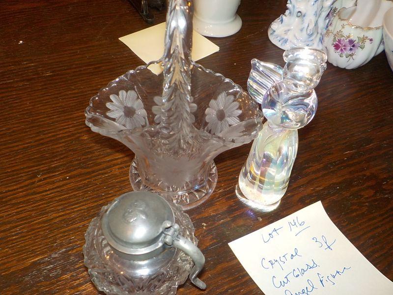 Crystal pieces Angel, basket, cut glass holder.