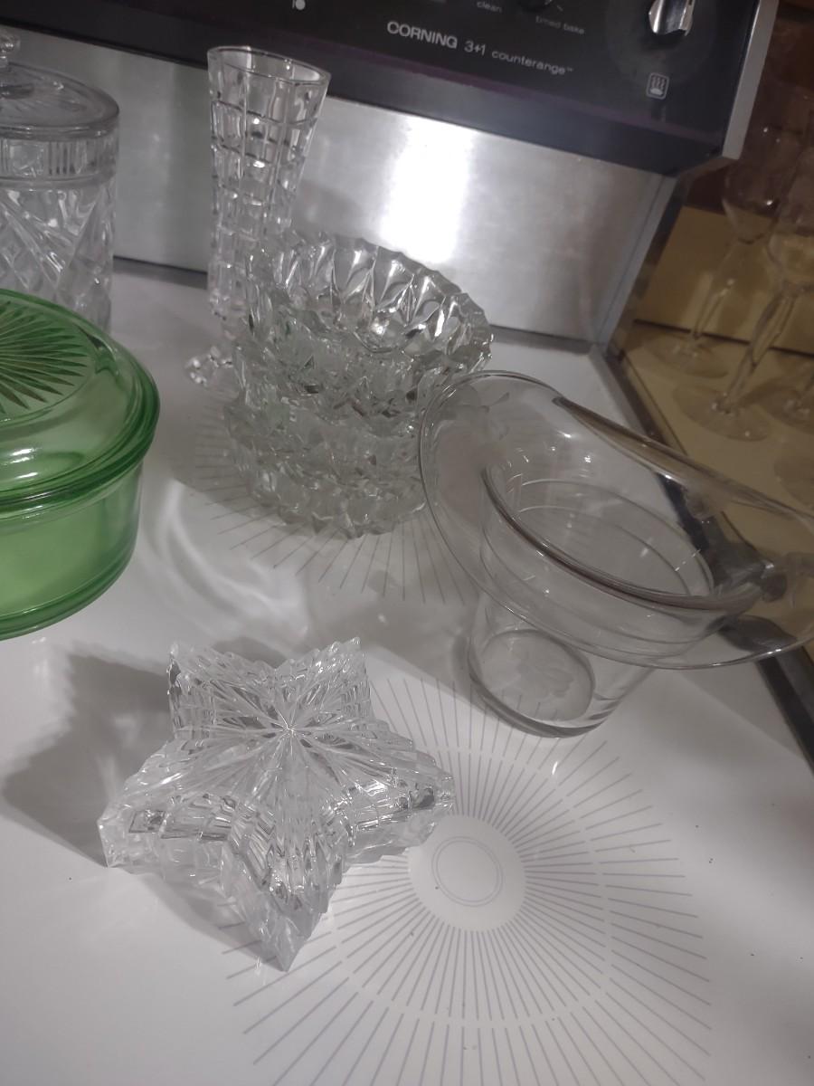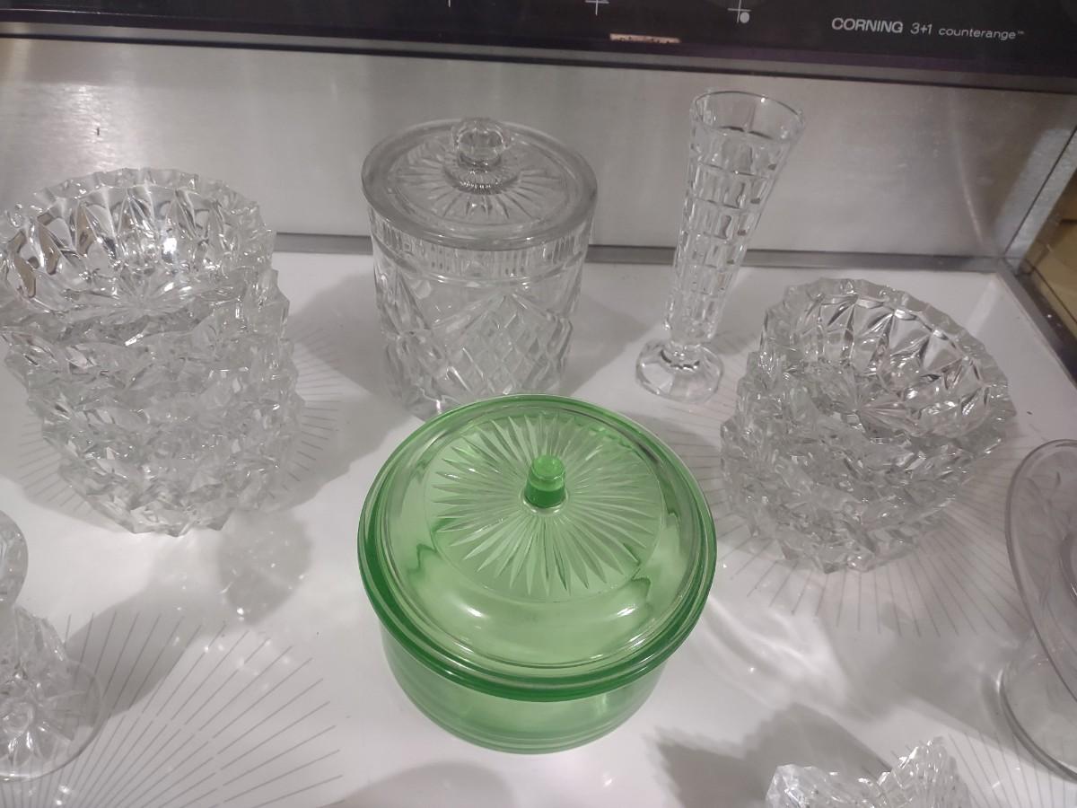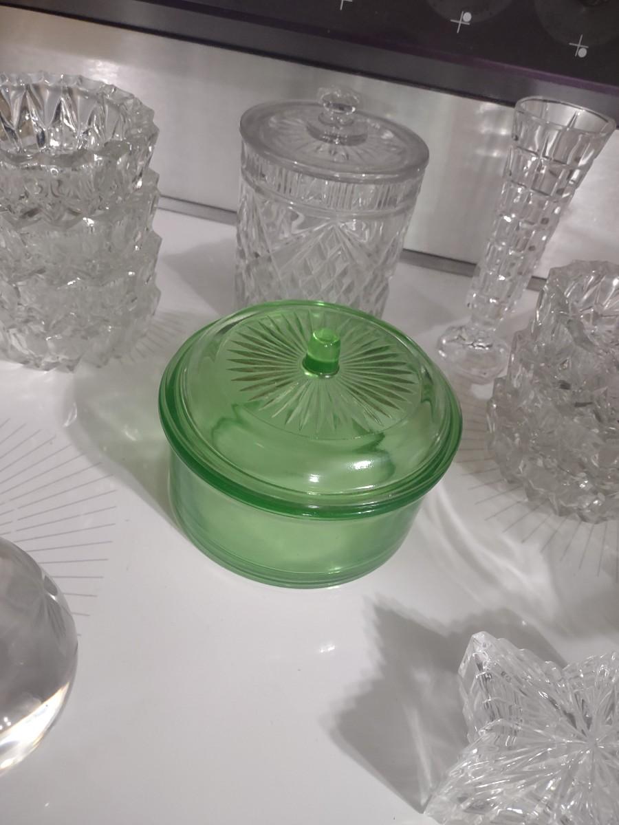 CRYSTAL PIECES, GREEN DEPRESSION CANDY DISH
