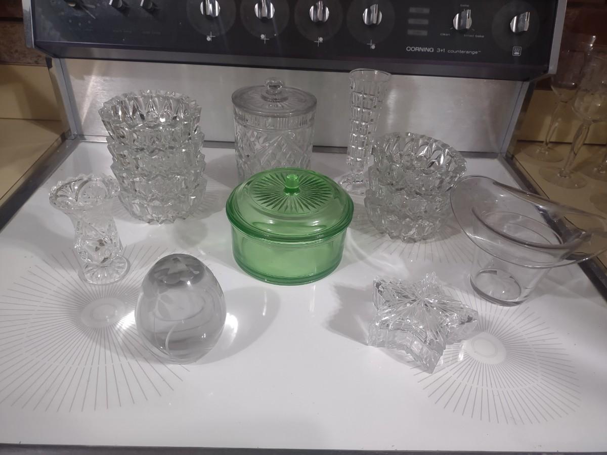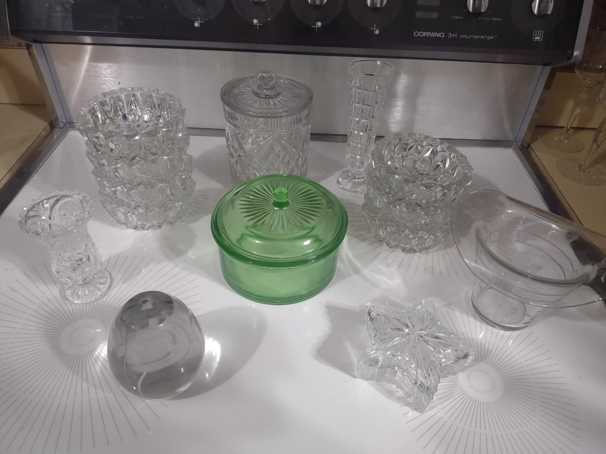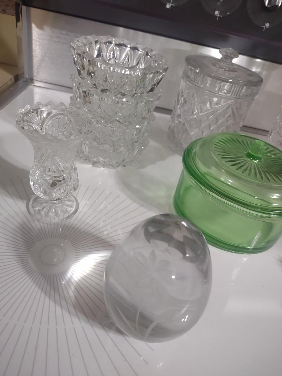 CRYSTAL PIECES, GREEN DEPRESSION CANDY DISH