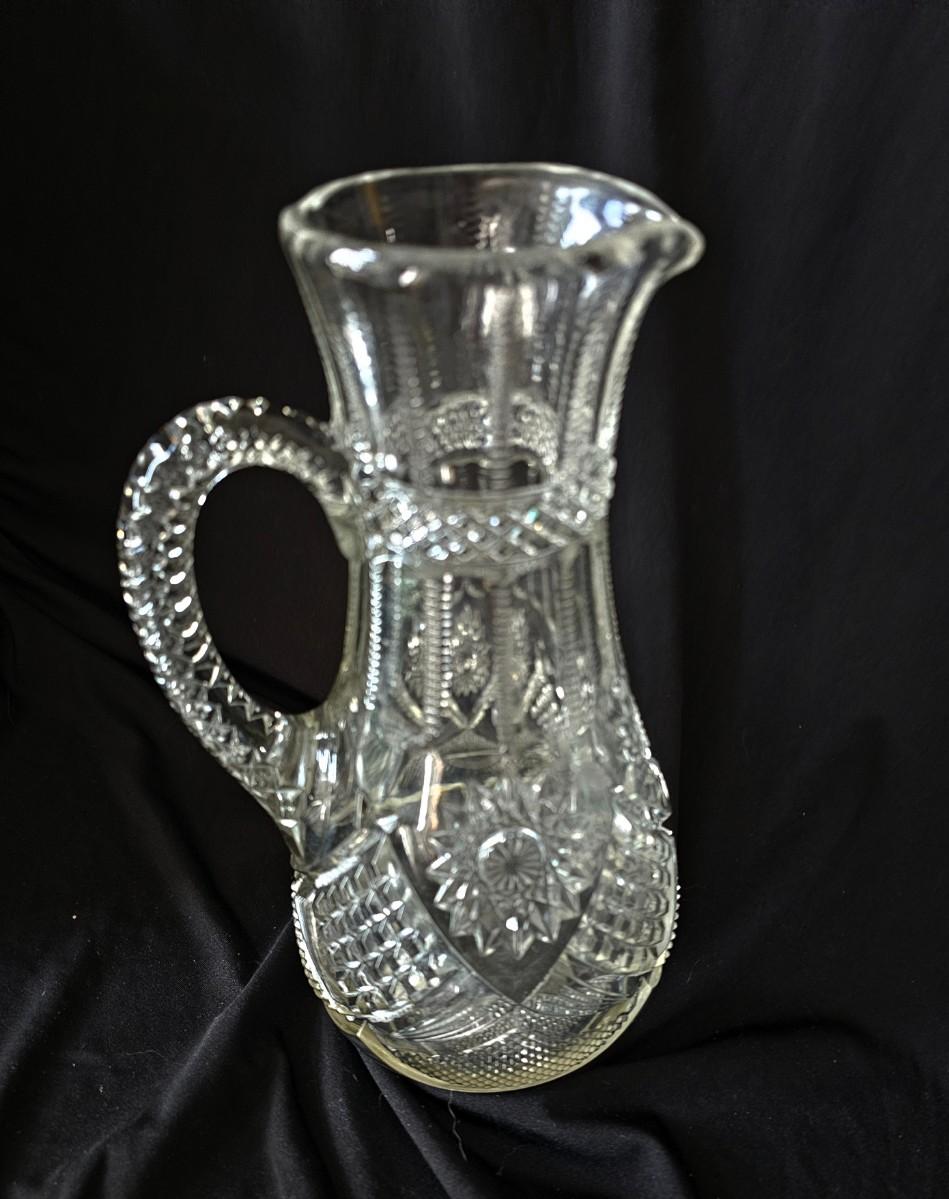 Crystal Pitcher, clear and heavy, beautiful early American glass