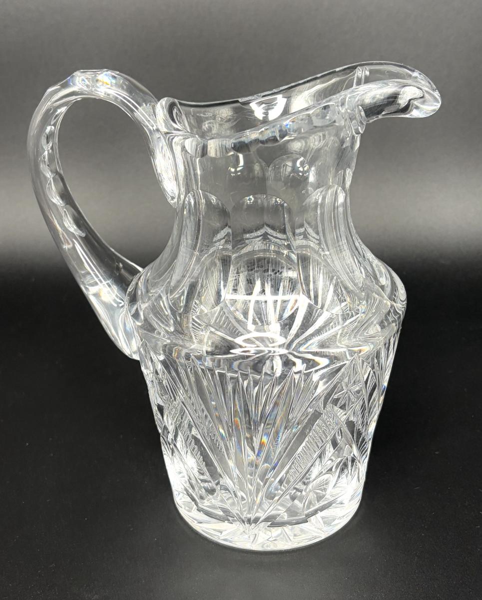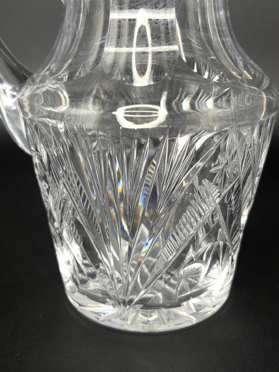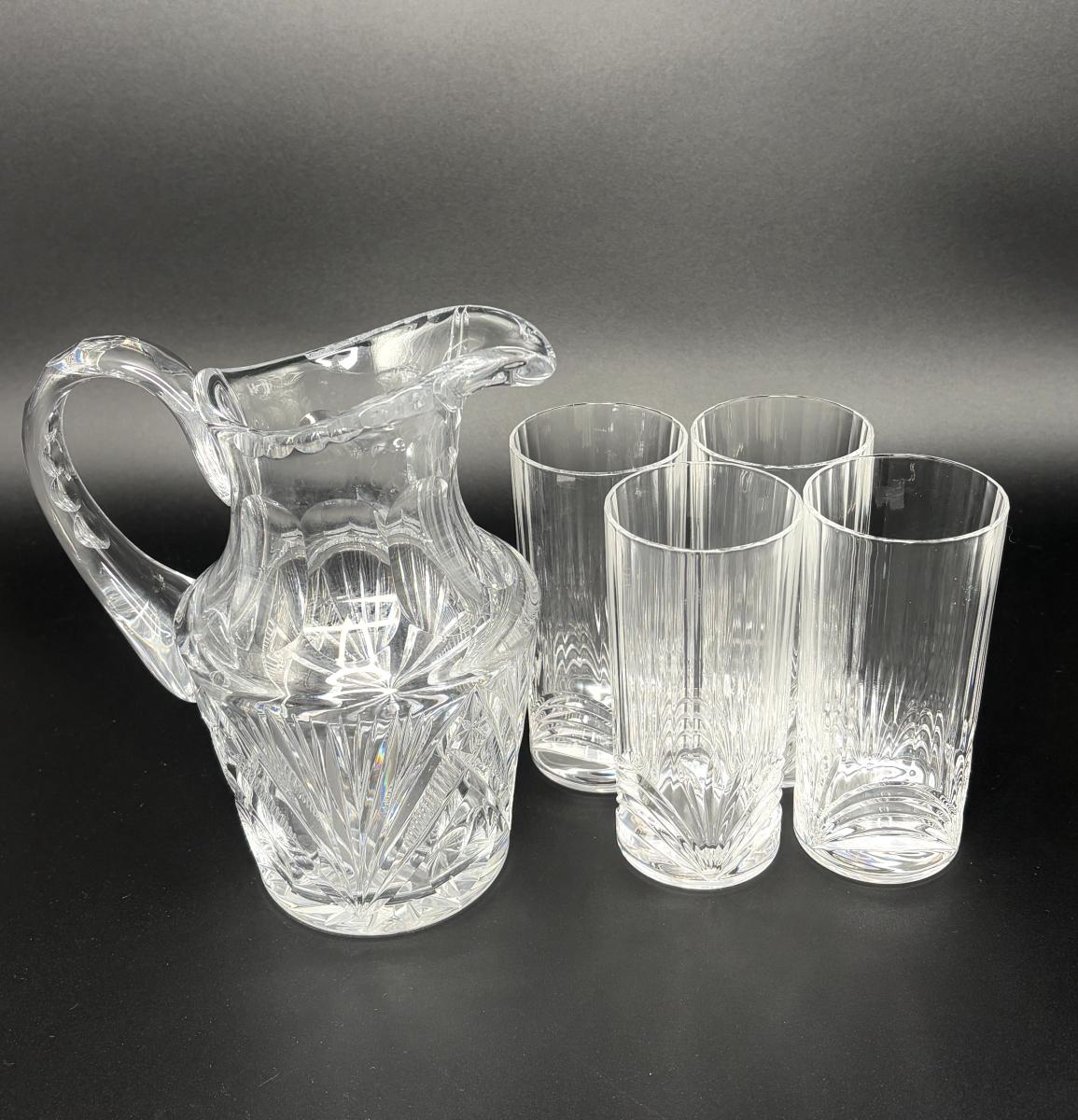 Pitcher is 8-1/2” tall x 7-1/2” wide from spout to handle. Glasses are 5-5/8” tall x 2-3/4” diameter.