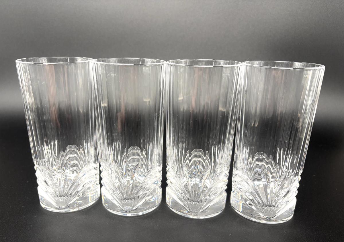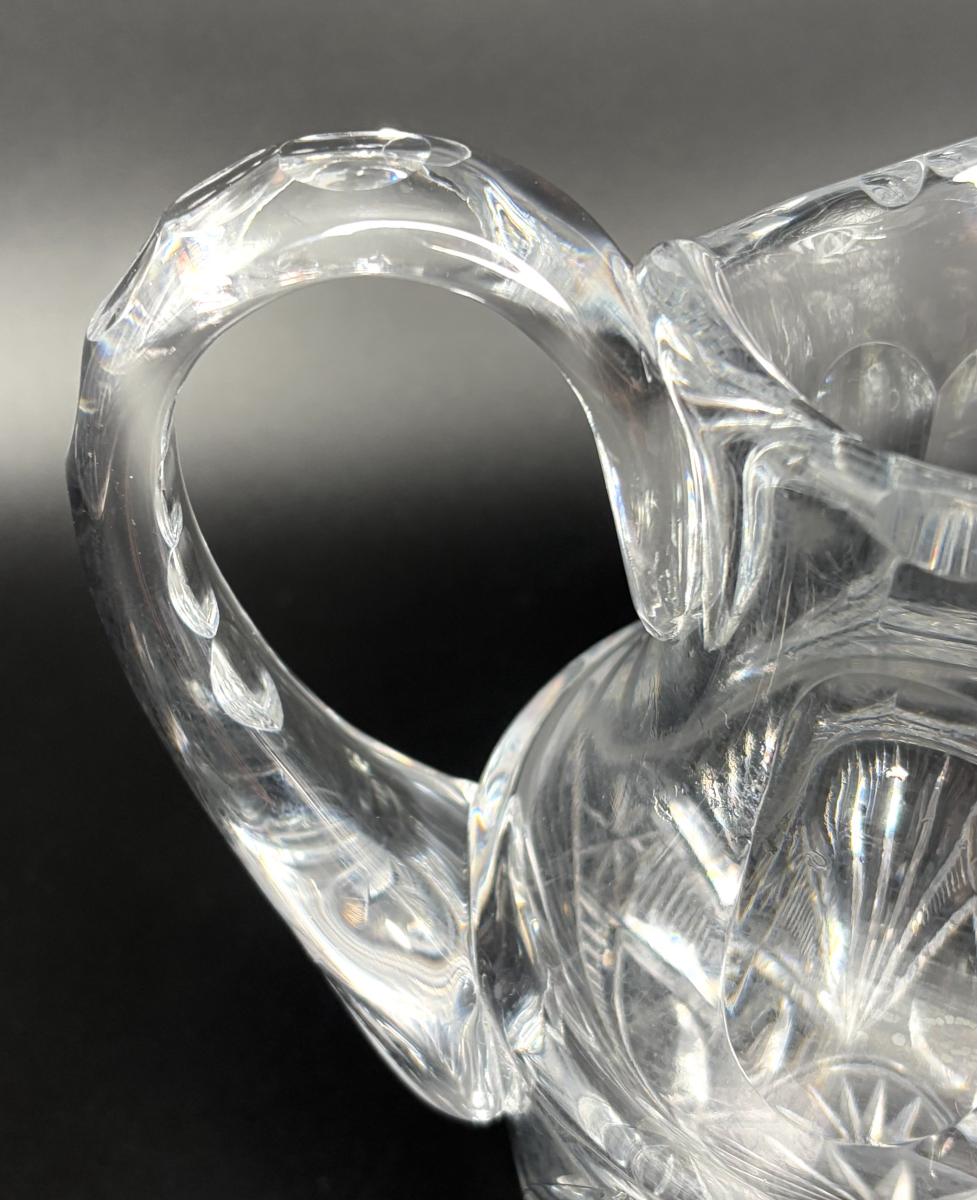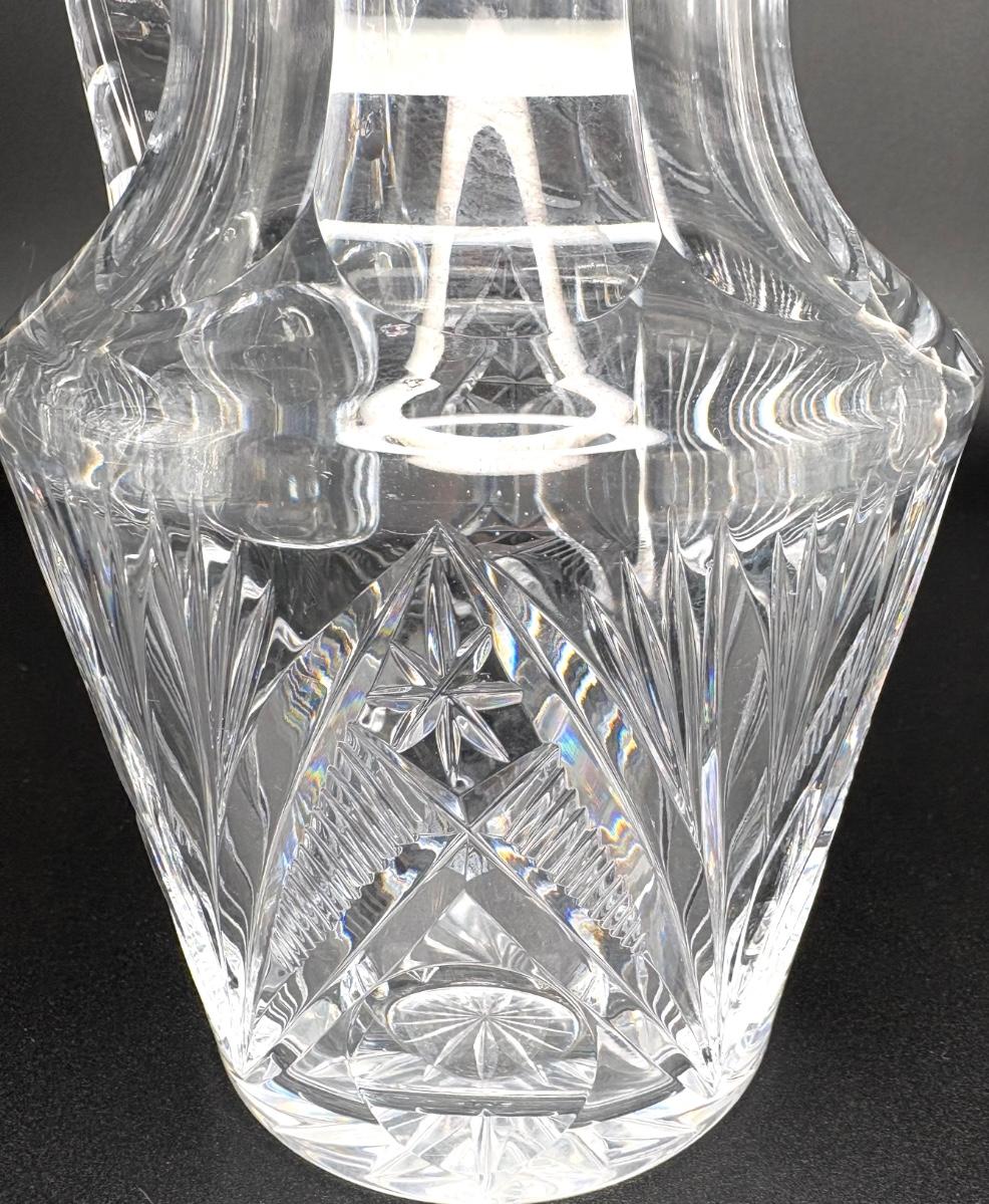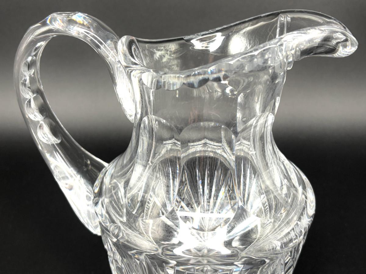 Pitcher is 8-1/2” tall x 7-1/2” wide from spout to handle. Glasses are 5-5/8” tall x 2-3/4” diameter.