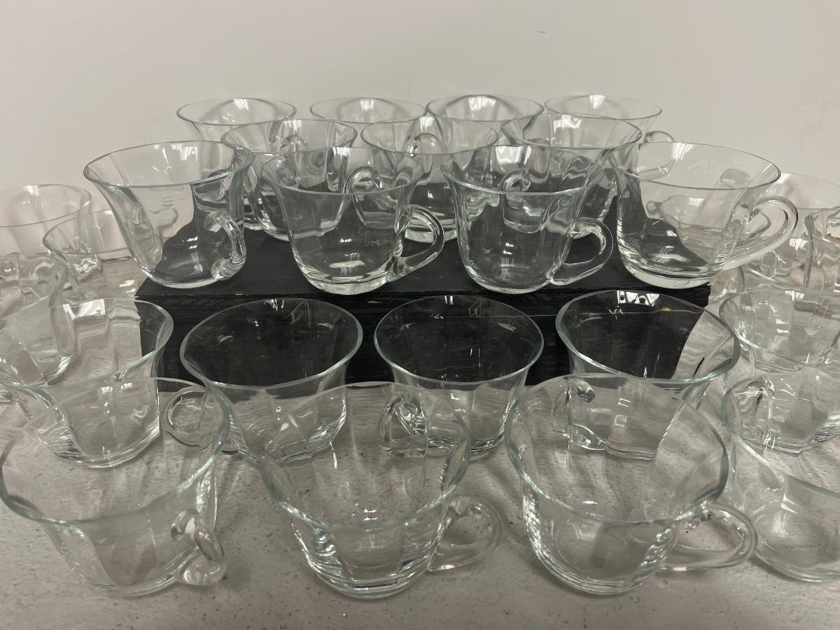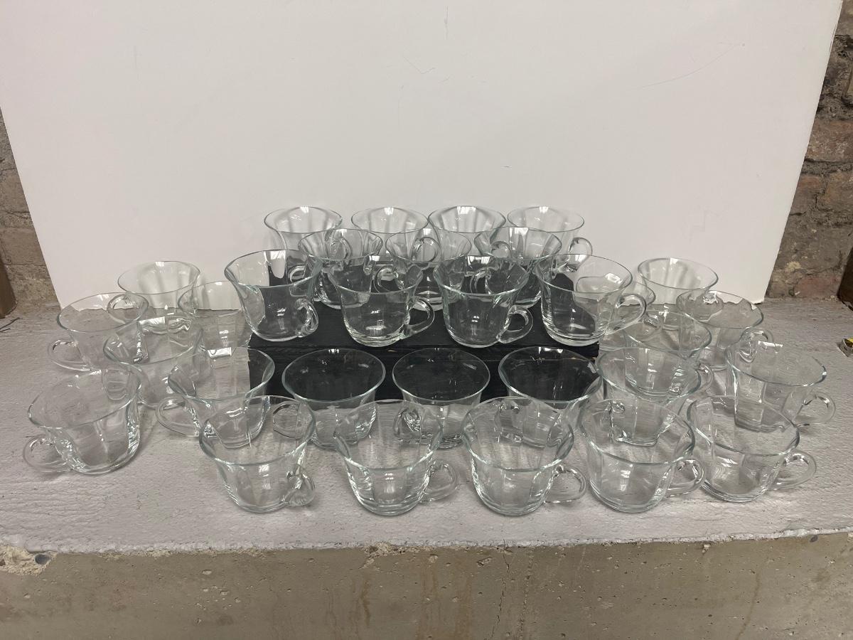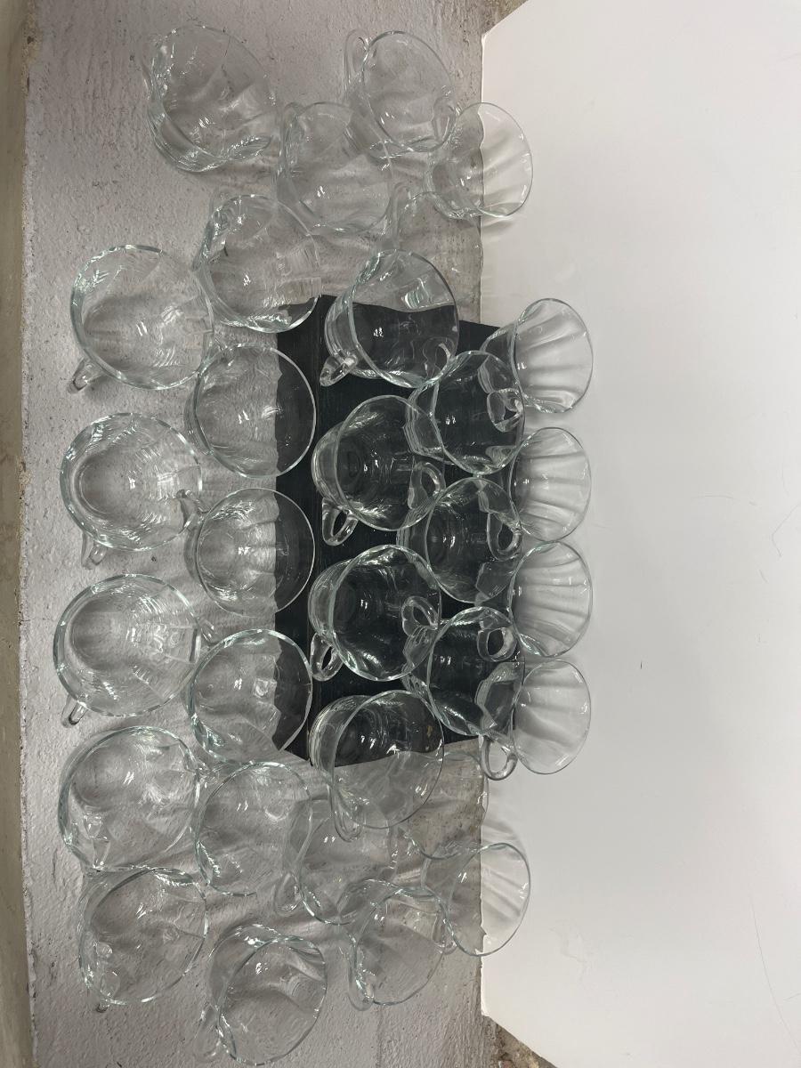 31 crystal punch cups-no bowl. Very delicate and pretty, no chips, ground lip edge...