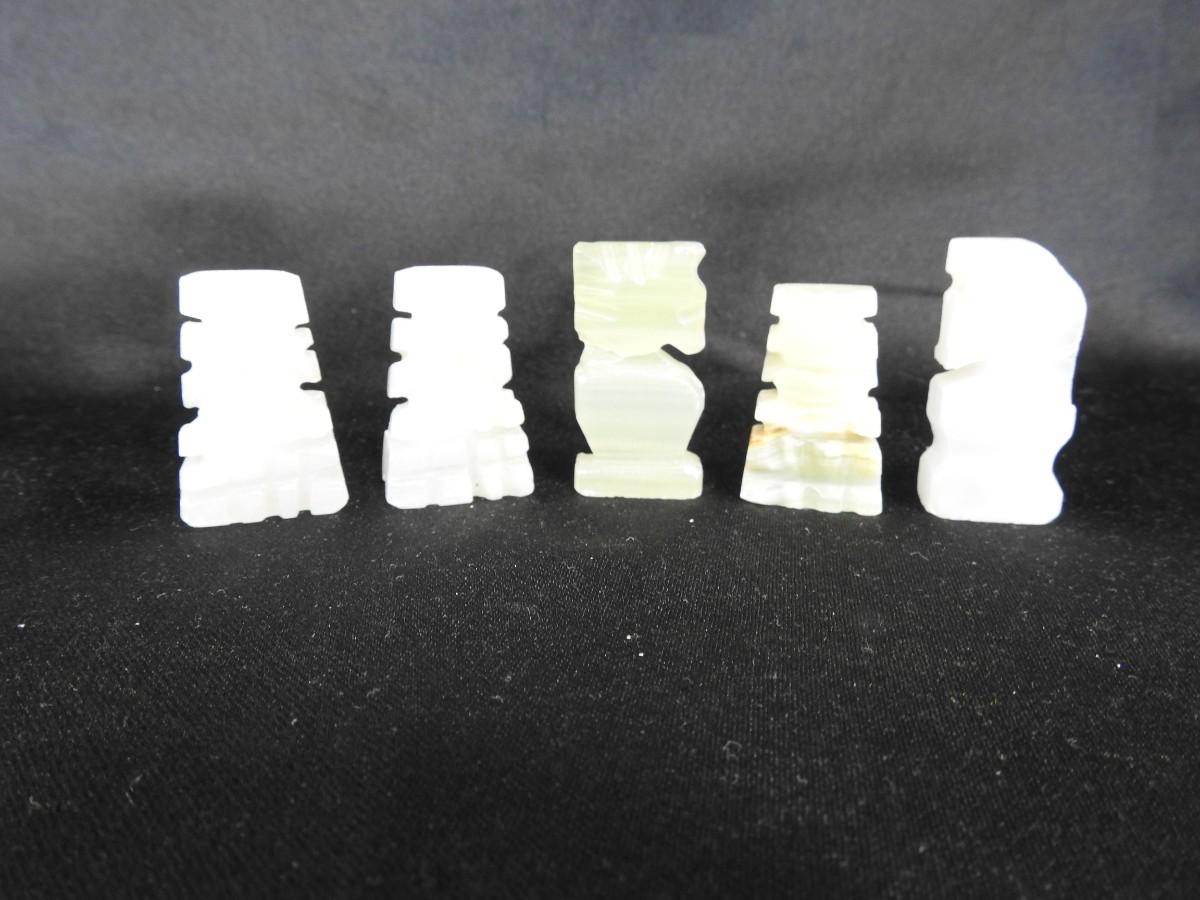 Crystal Quartz Chess Pieces, Qty 5. 2 Green 3 White