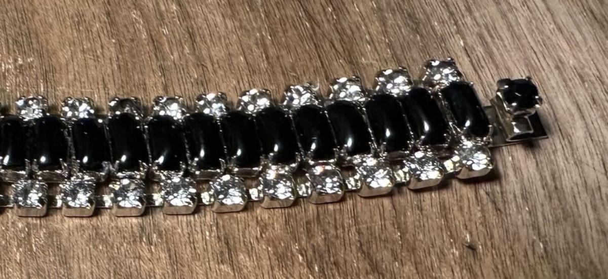 CRYSTAL RHINESTONE & BLACK ONYX DRESS BRACELET