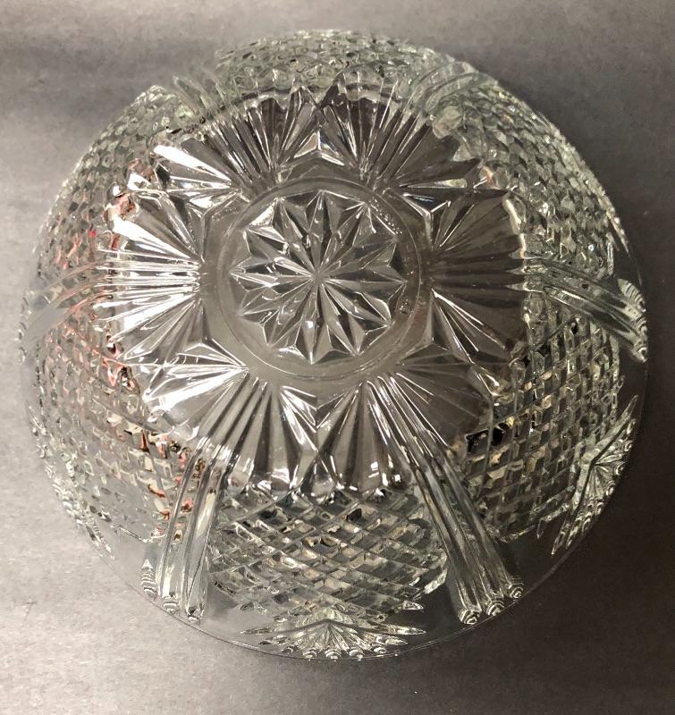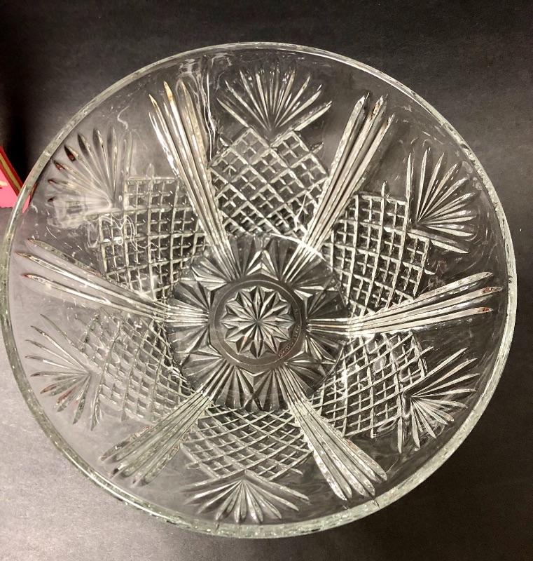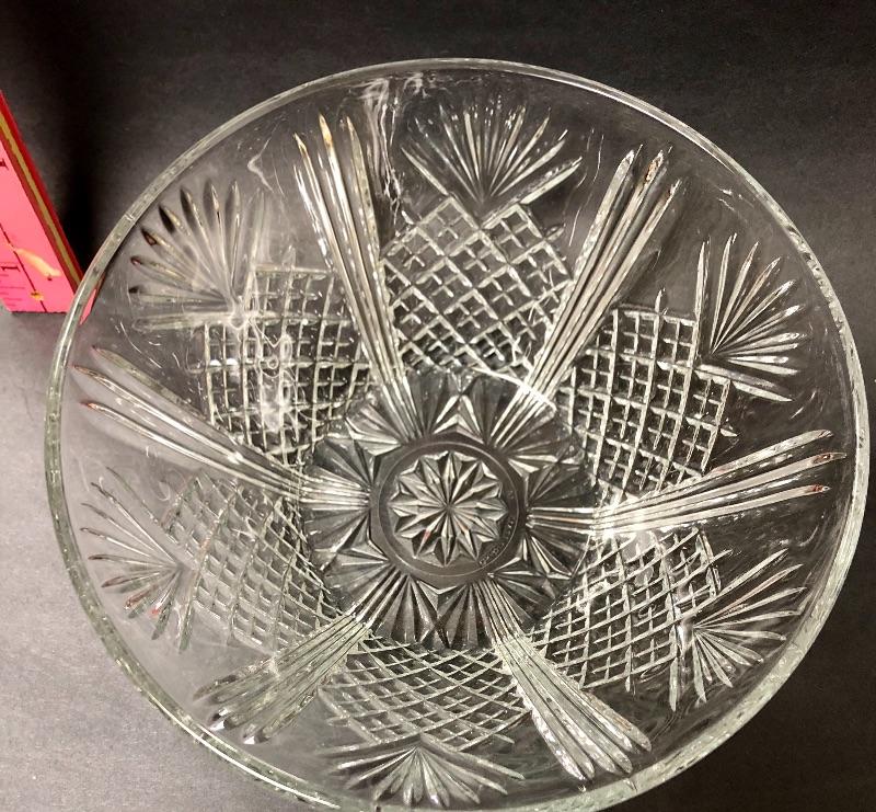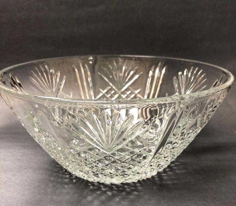 Vintage crystal serving bowl. Has a pineapple cut pattern to it. Great as a serving bowl or as a fruit bowl. 8" size. In good condition