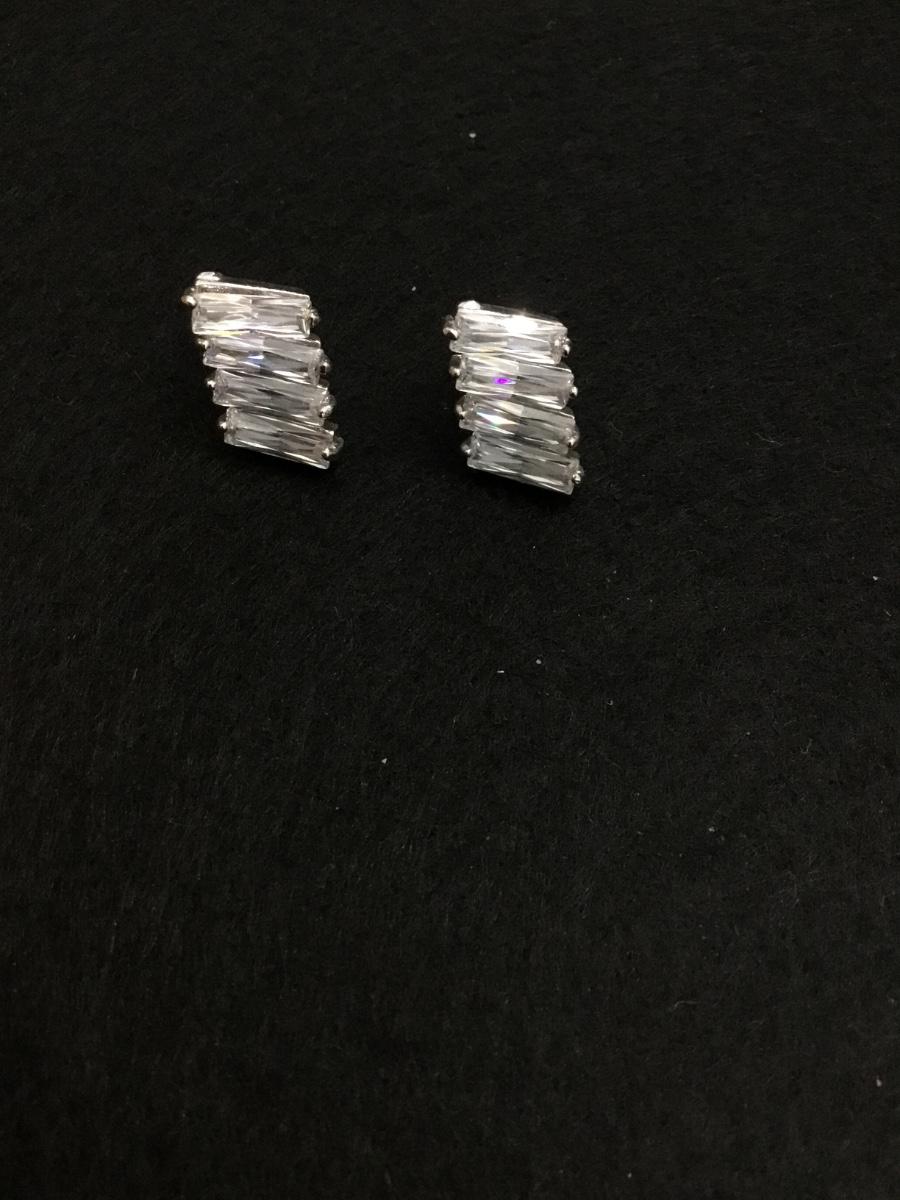 Crystal Silver toned stud statement earrings